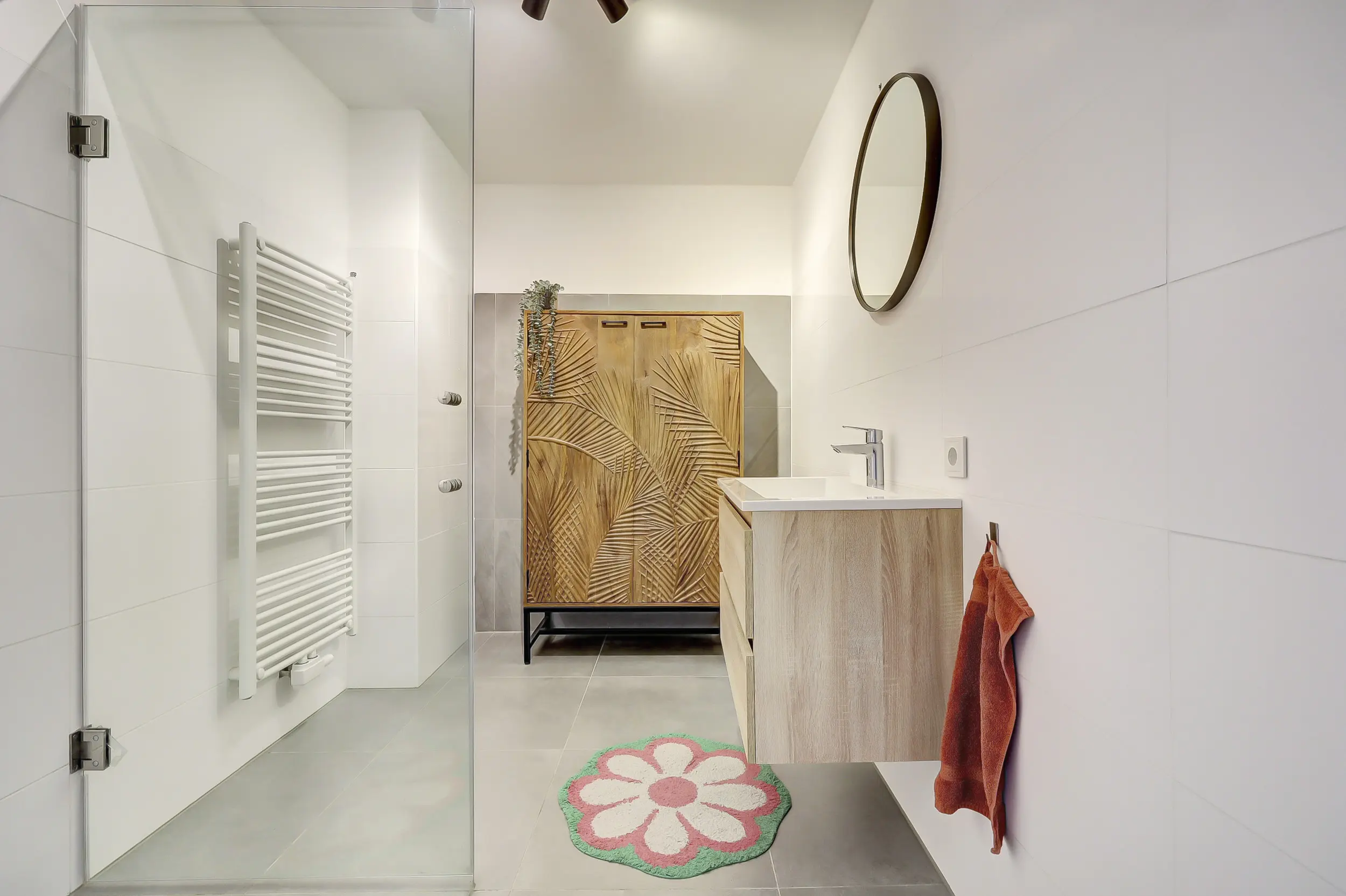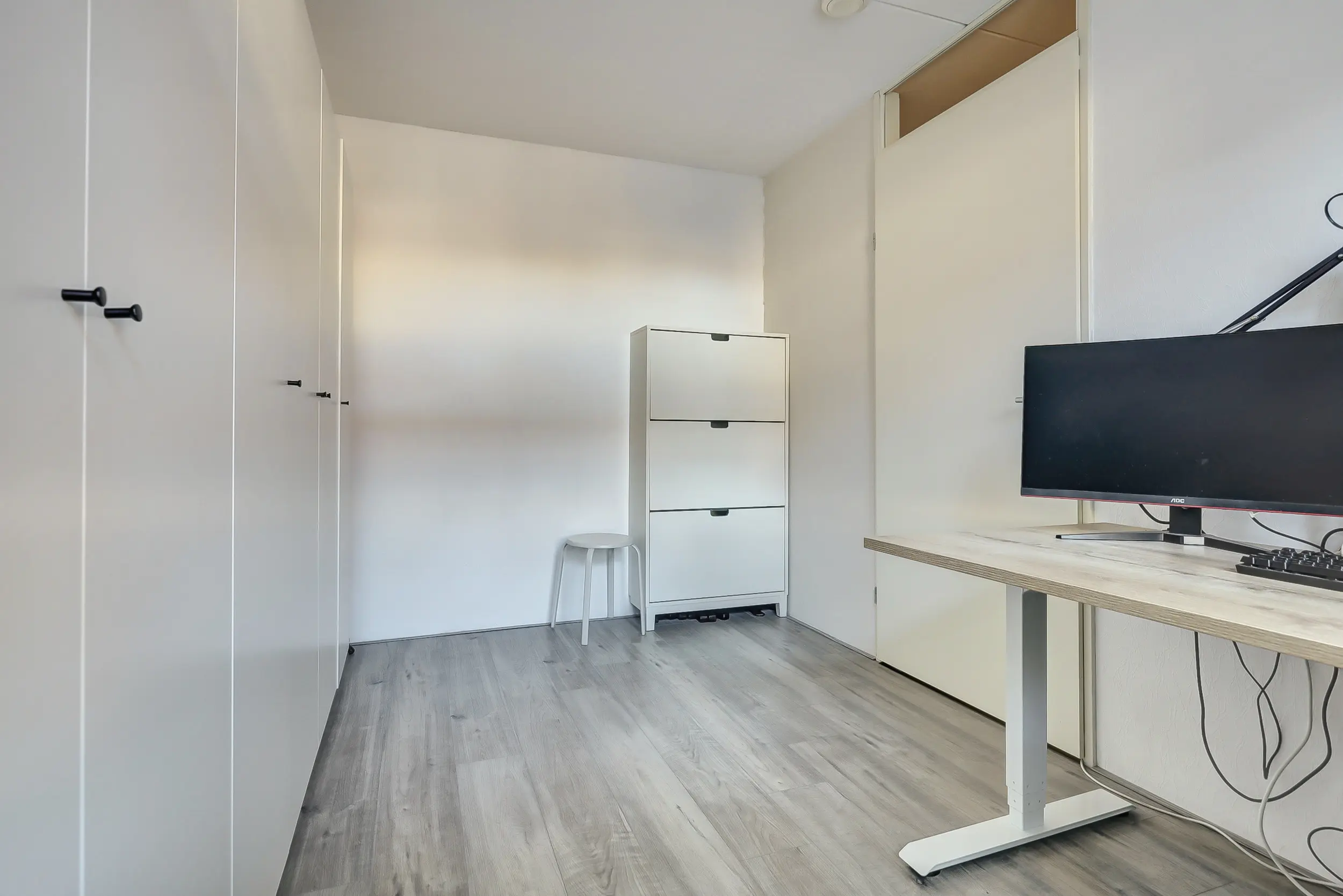 Het appartement beschikt over twee ruime slaapkamers. De modern uitgevoerde badkamer is voorzien van een comfortabele inloopdouche, een stijlvol wastafelmeubel en een designradiator. Daarnaast is er een praktische bijkeuken met wasmachineaansluiting, CV-opstelling (Ferroli, 2021), WTW-installatie en mechanische ventilatie.