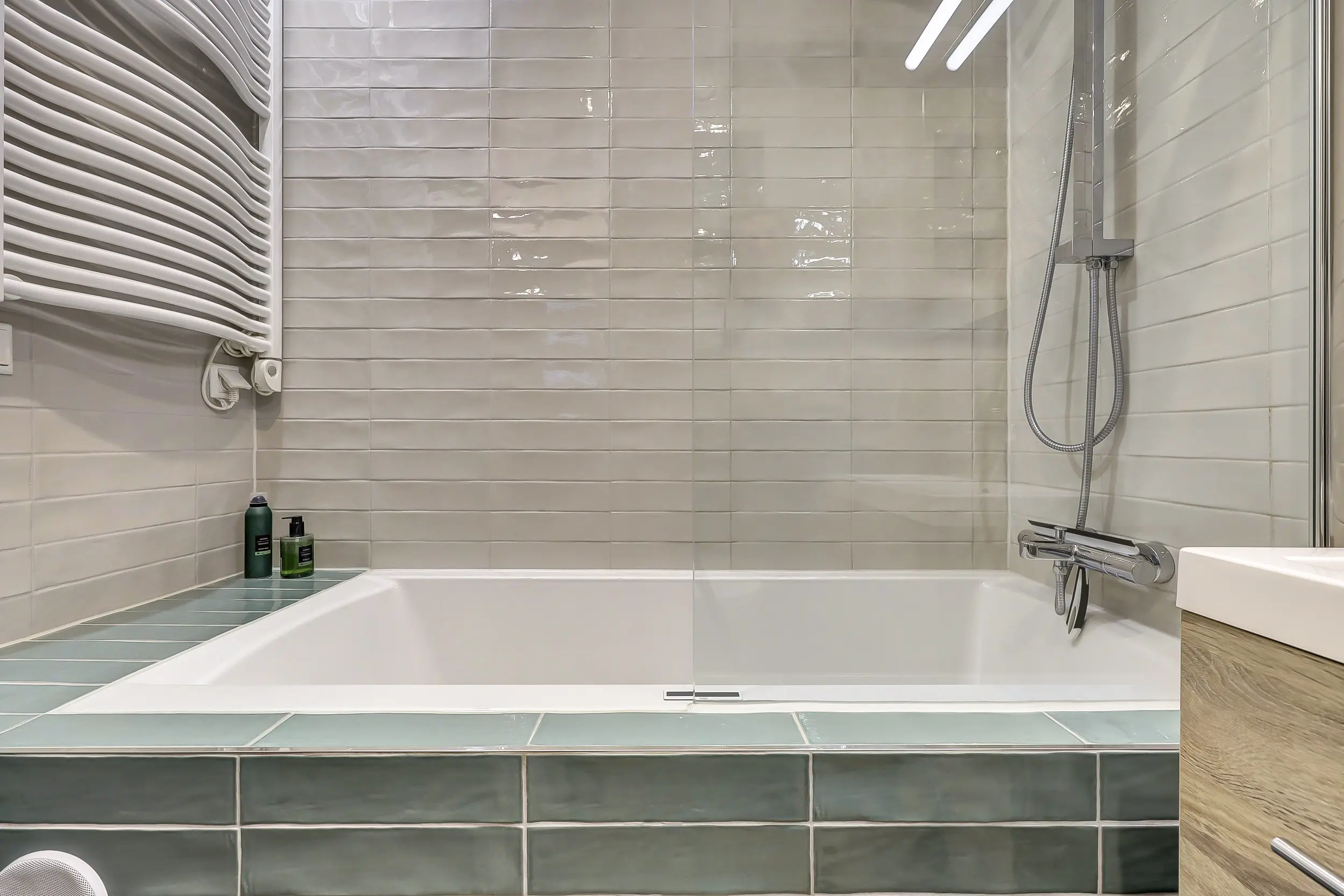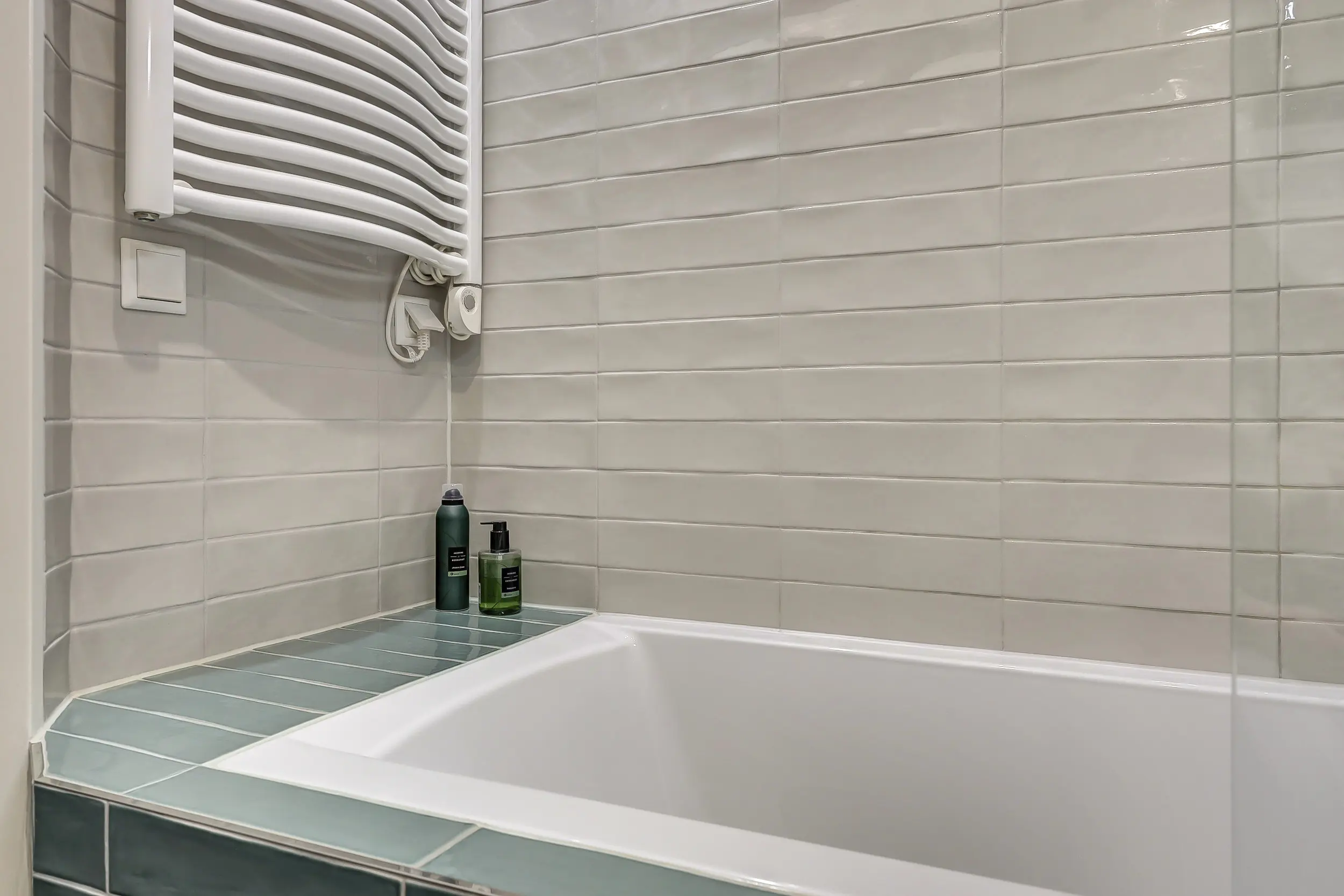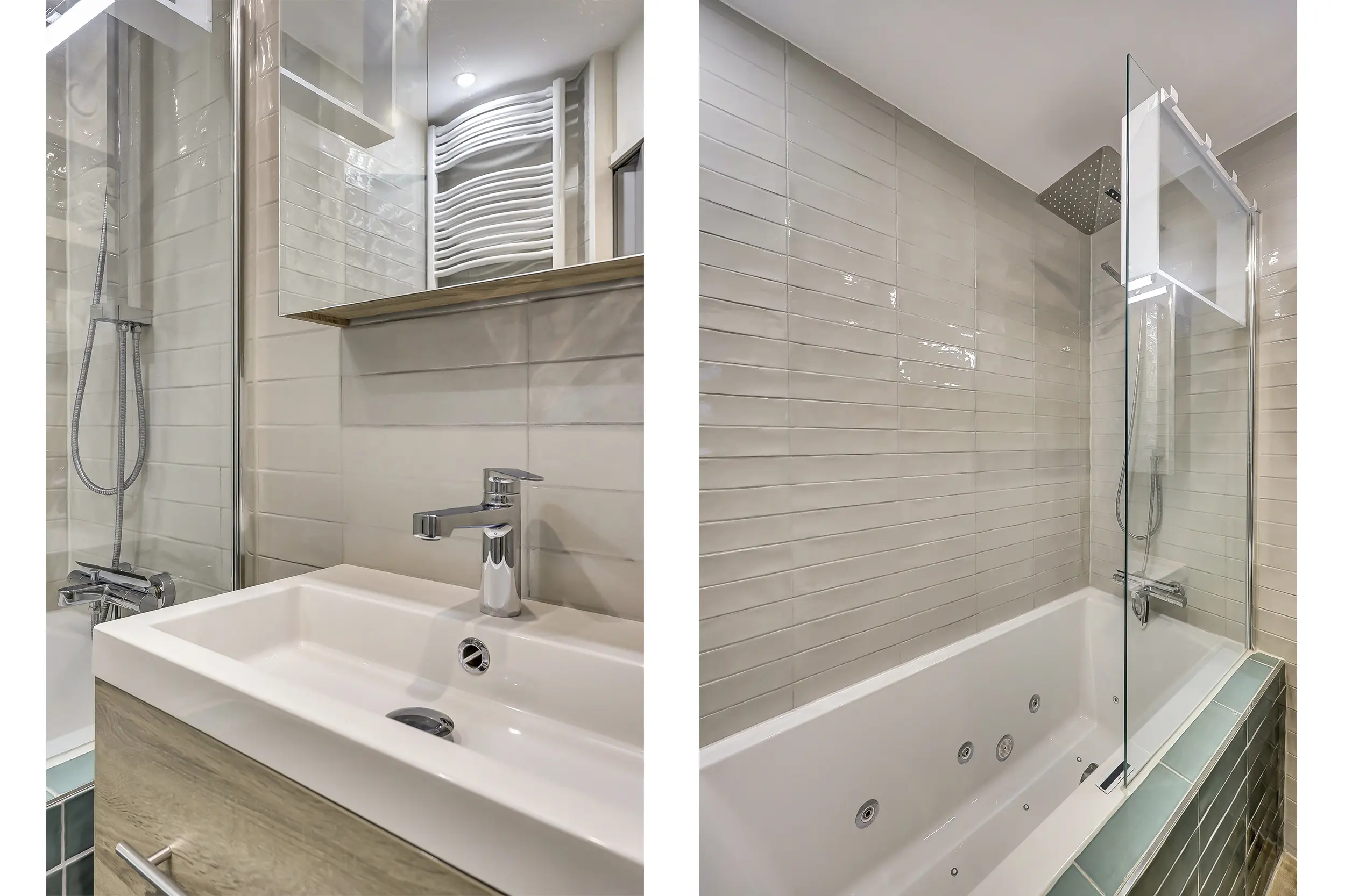 - Moderne badkamer (2023) met jacuzzi, regendouche, normale douche, massagejets, bubbelbad, lichttherapie en Bluetooth-speaker;