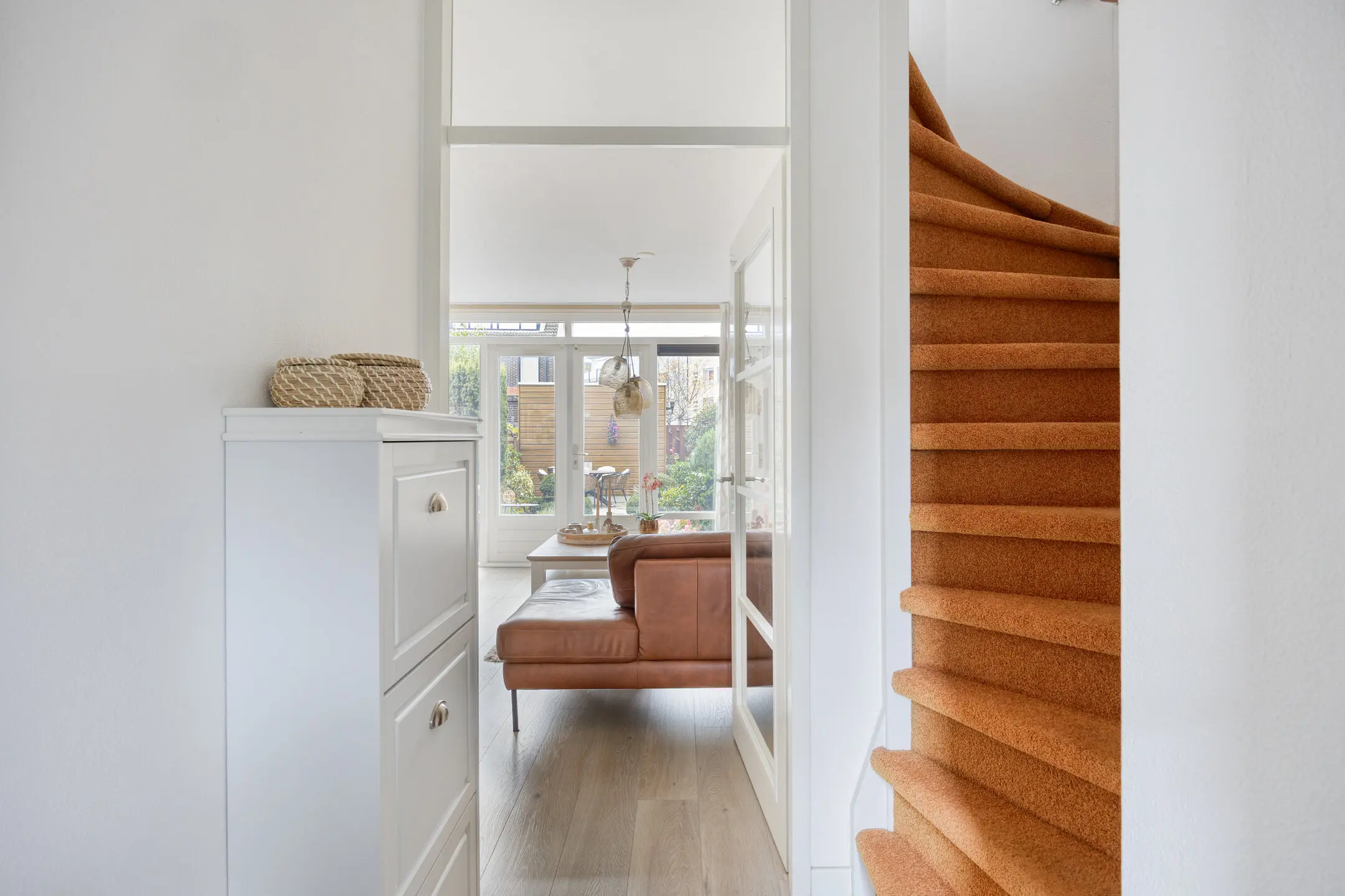 Entree, hal met meterkast en trapopgang. De geheel in lichte kleurstelling betegelde toiletruimte is gemoderniseerd in maart 2025. en is uitgerust met een wandcloset en fonteintje. Via een deur met glas inzet is de living bereikbaar, bestaande uit een open keuken aan de voorzijde en een tuingerichte woonkamer. De keuken is geplaatst in L-opstelling en is voorzien van een keramische kookplaat, RVS afzuigkap, vaatwasmachine, koel-/vriescombinatie, combi-oven en spoelbak onder het raam. In de gezellige woonkamer is een praktische trapkast aanwezig en de openslaande deuren geven toegang tot de achtertuin.