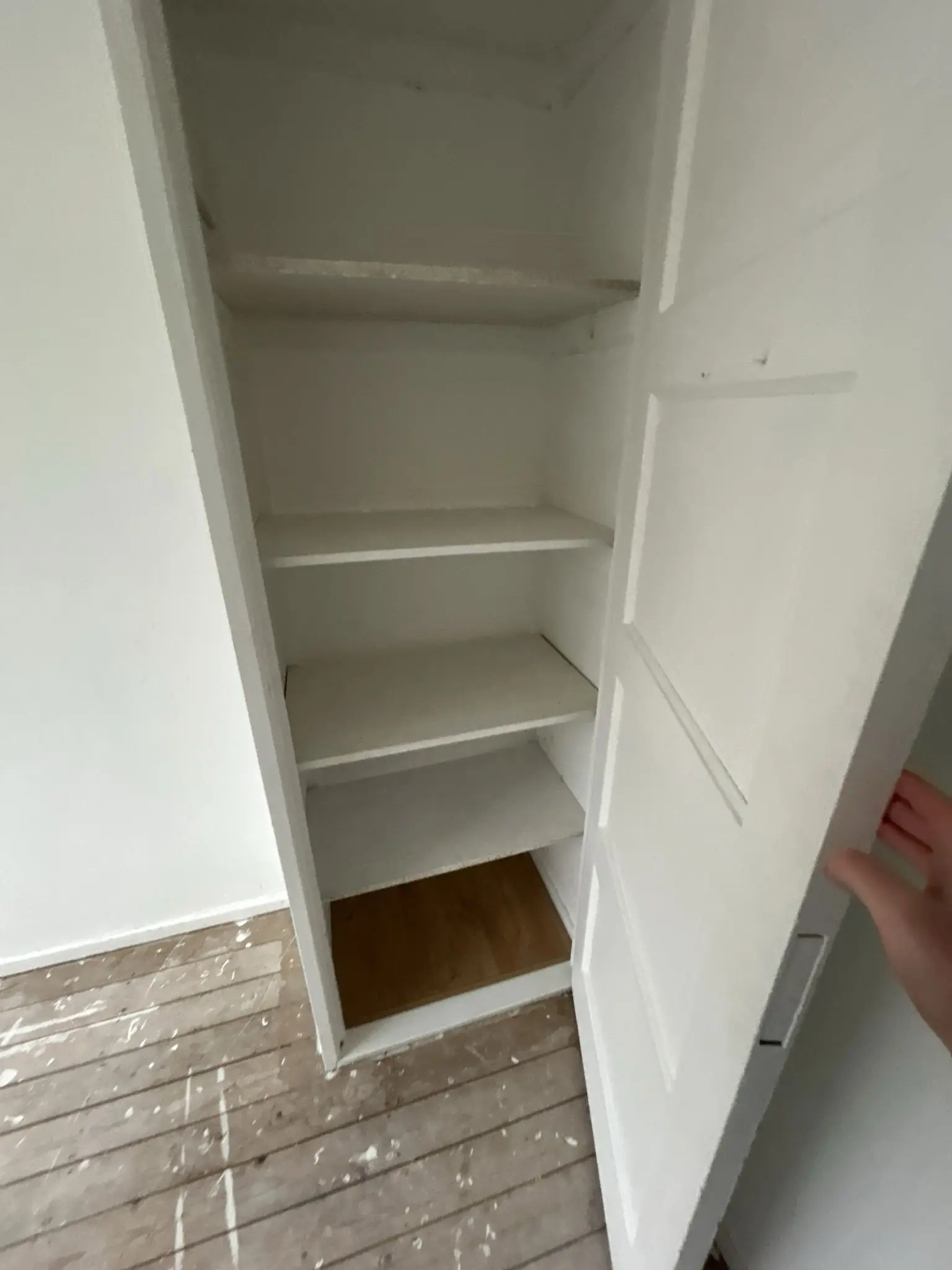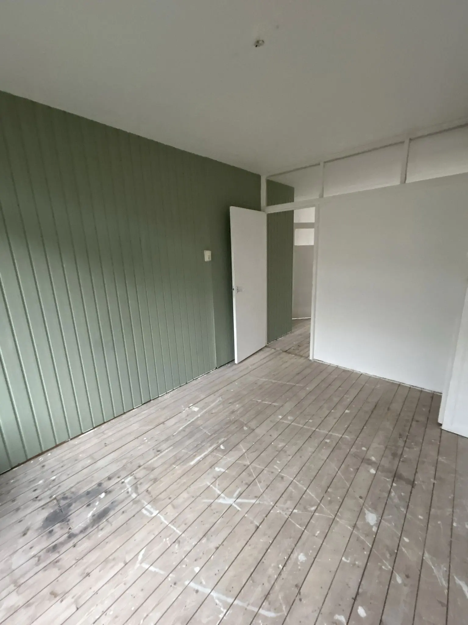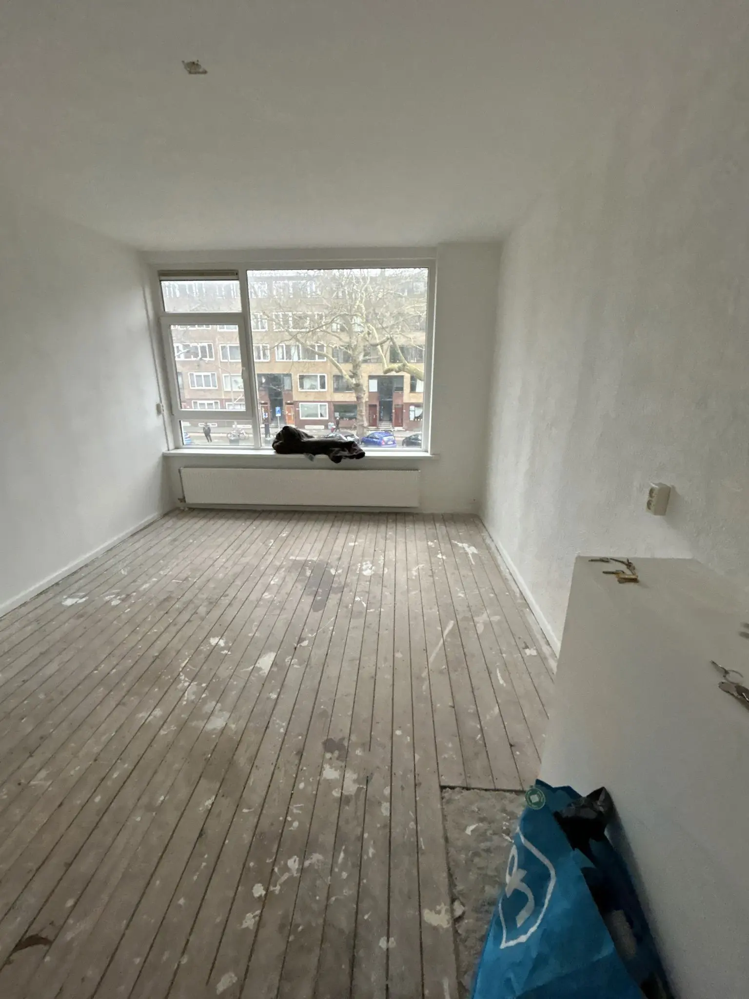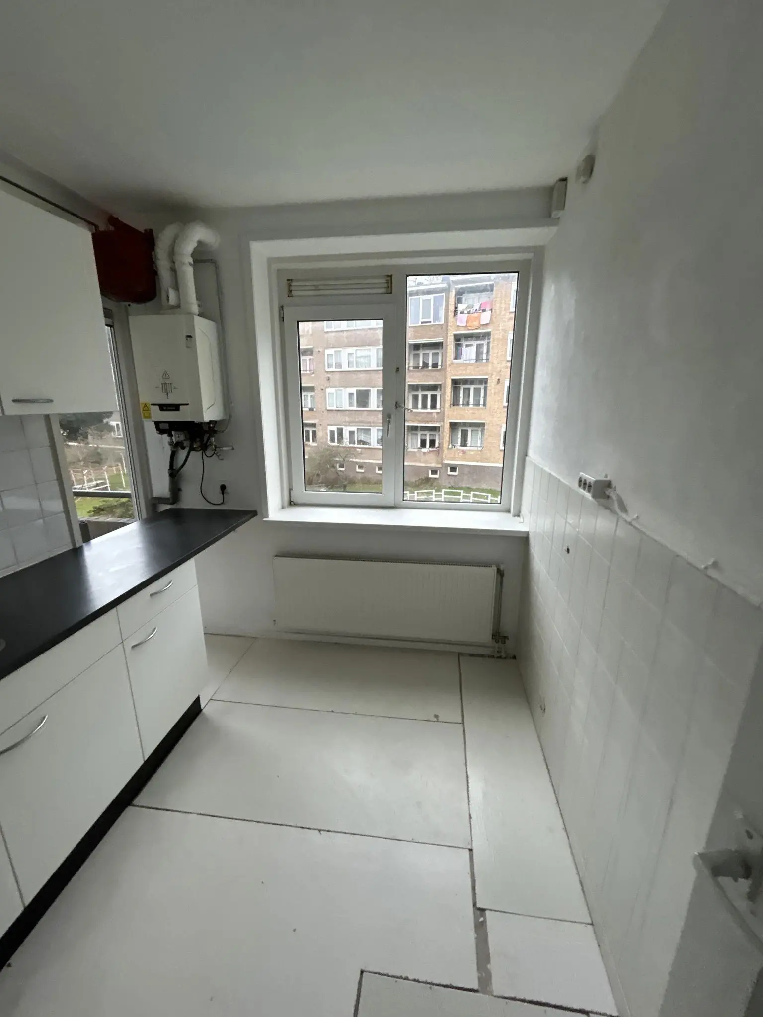Vanuit het portiek komt u via de voordeur de woning binnen. Via de gang treft u de verschillende vertrekken. Aan de voorzijde van de woning treft u de woonkamer met veel lichtinval en een vaste kast. Daarnaast is er een grote slaapkamer die toegang heeft tot het balkon.