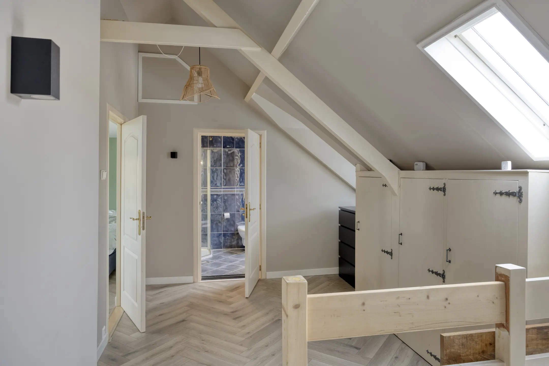 Op de eerste verdieping bevinden zich drie ruime slaapkamers. De hoofdslaapkamer beschikt over een inloopkast en een luxe ensuite badkamer. Vanaf de overloop zijn de overige slaapkamers en de tweede badkamer bereikbaar.