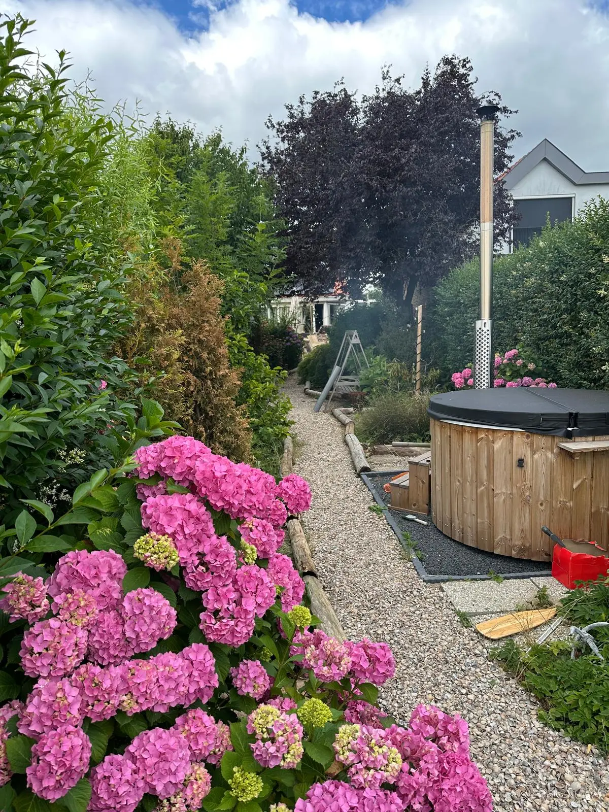 - Hottub in de tuin blijft achter;