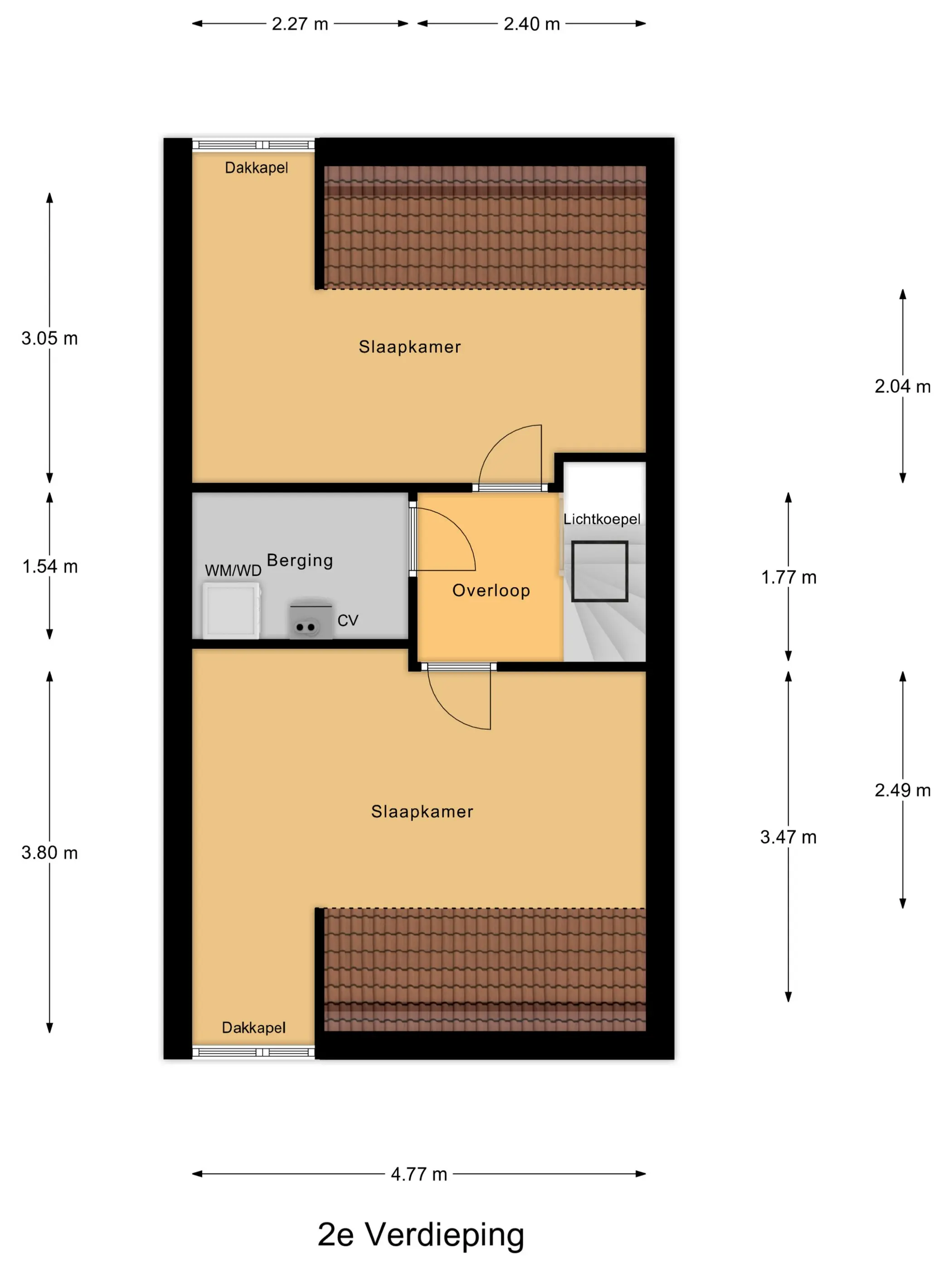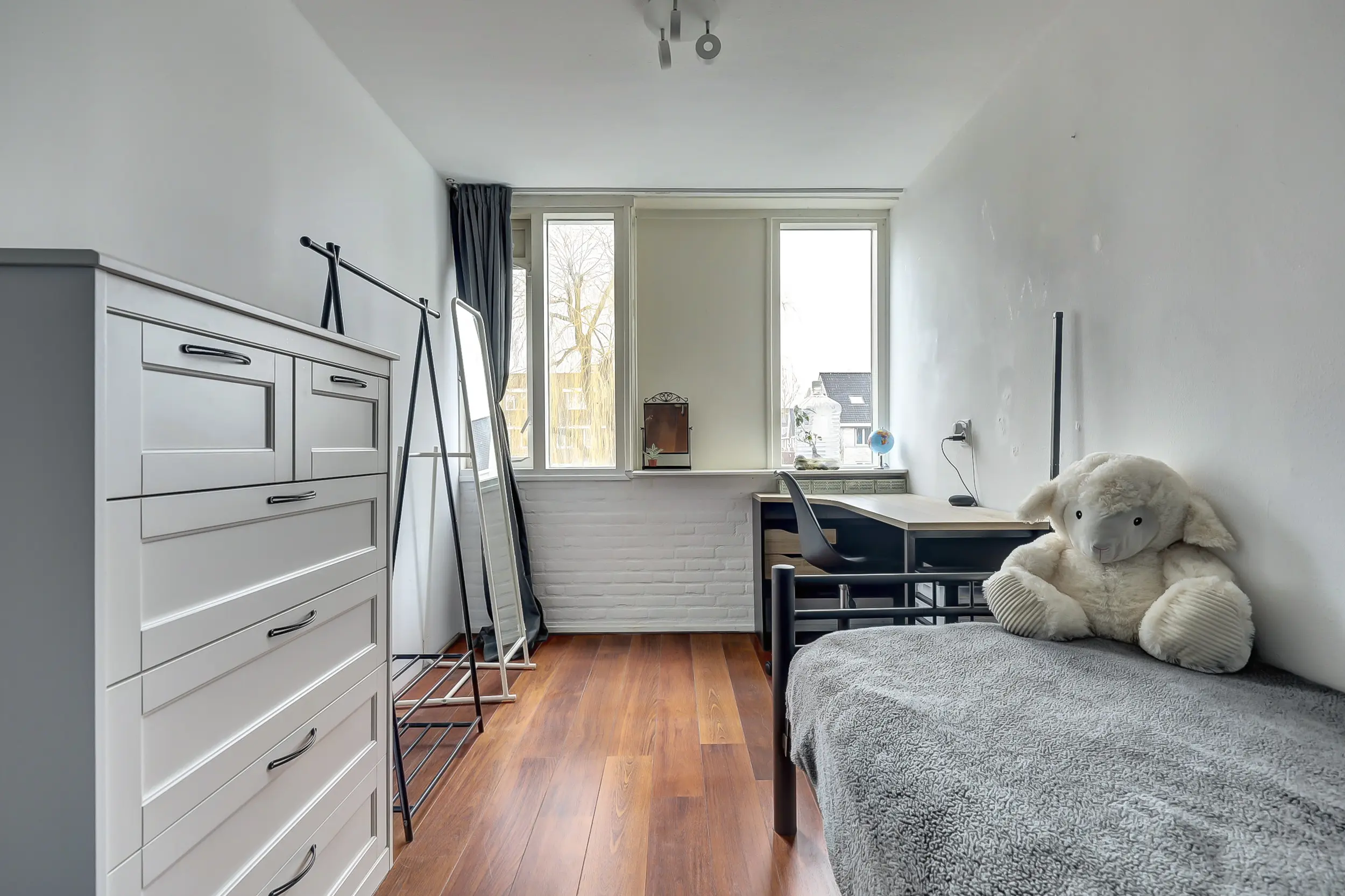 Door de vaste trap kom je op de overloop met toegang tot de twee slaapkamers van deze verdieping. De slaapkamers zijn voorzien van een dakkapel, parketvloer en hebben elk een airco voor warmen en koelen. In de technische ruimte is de opstelplaats voor de CV-ketel (Remeha 2019) en ruimte voor de wasmachine en wasdroger.