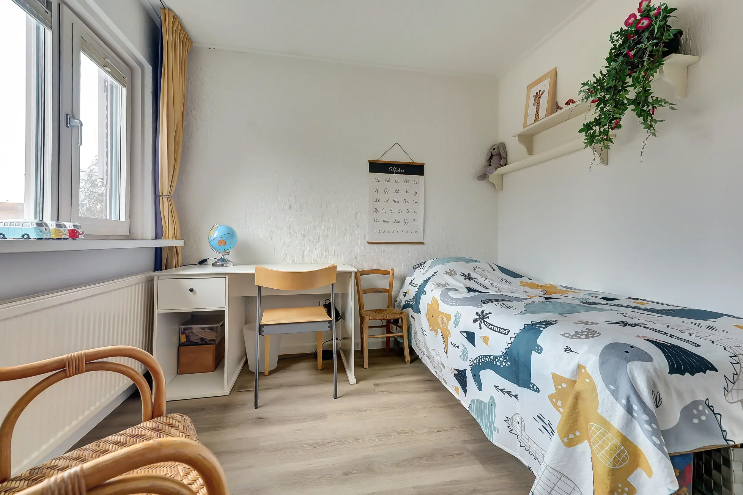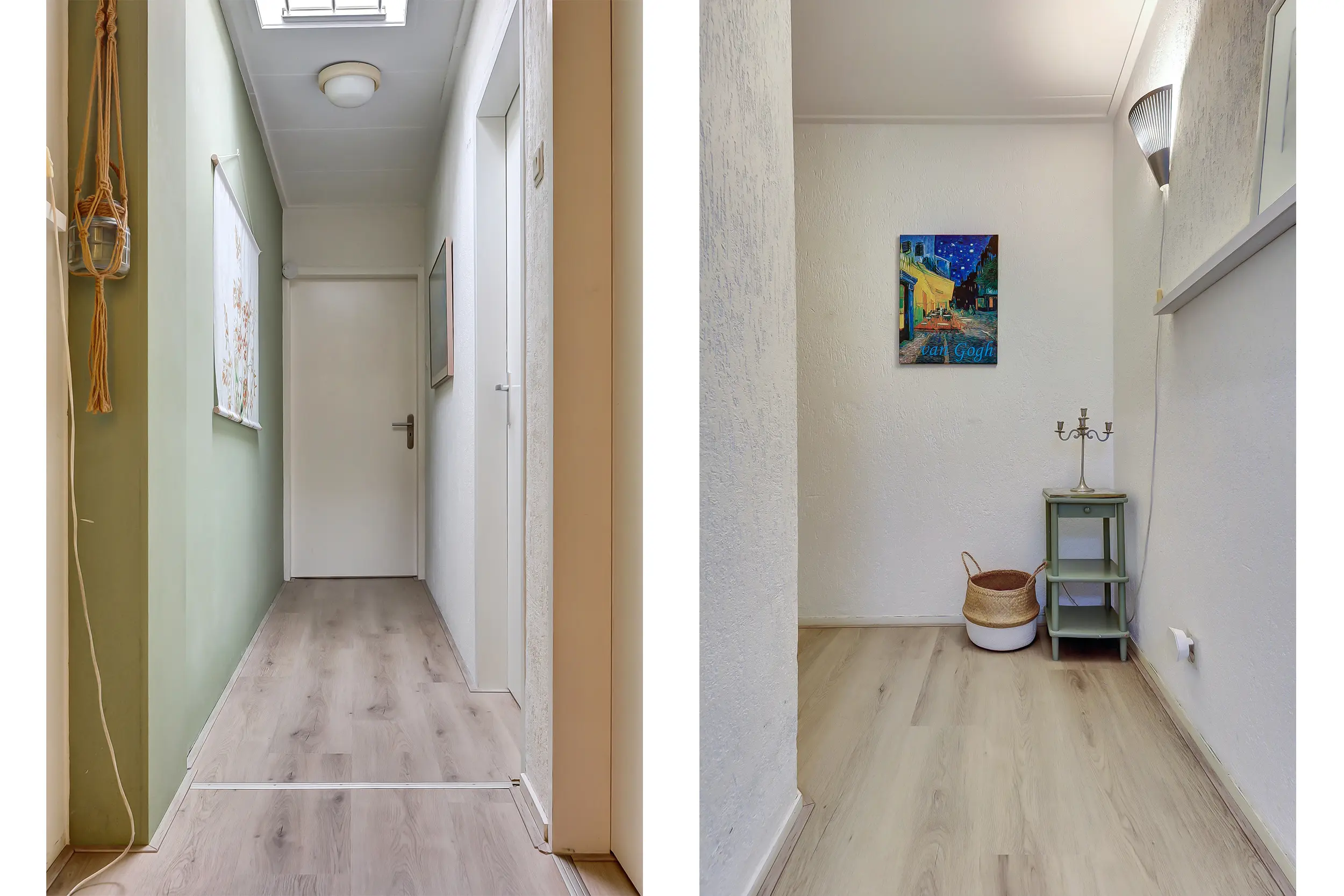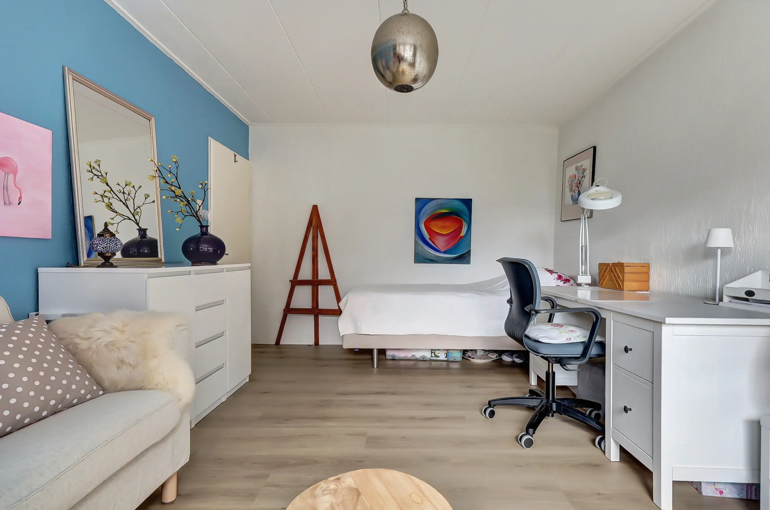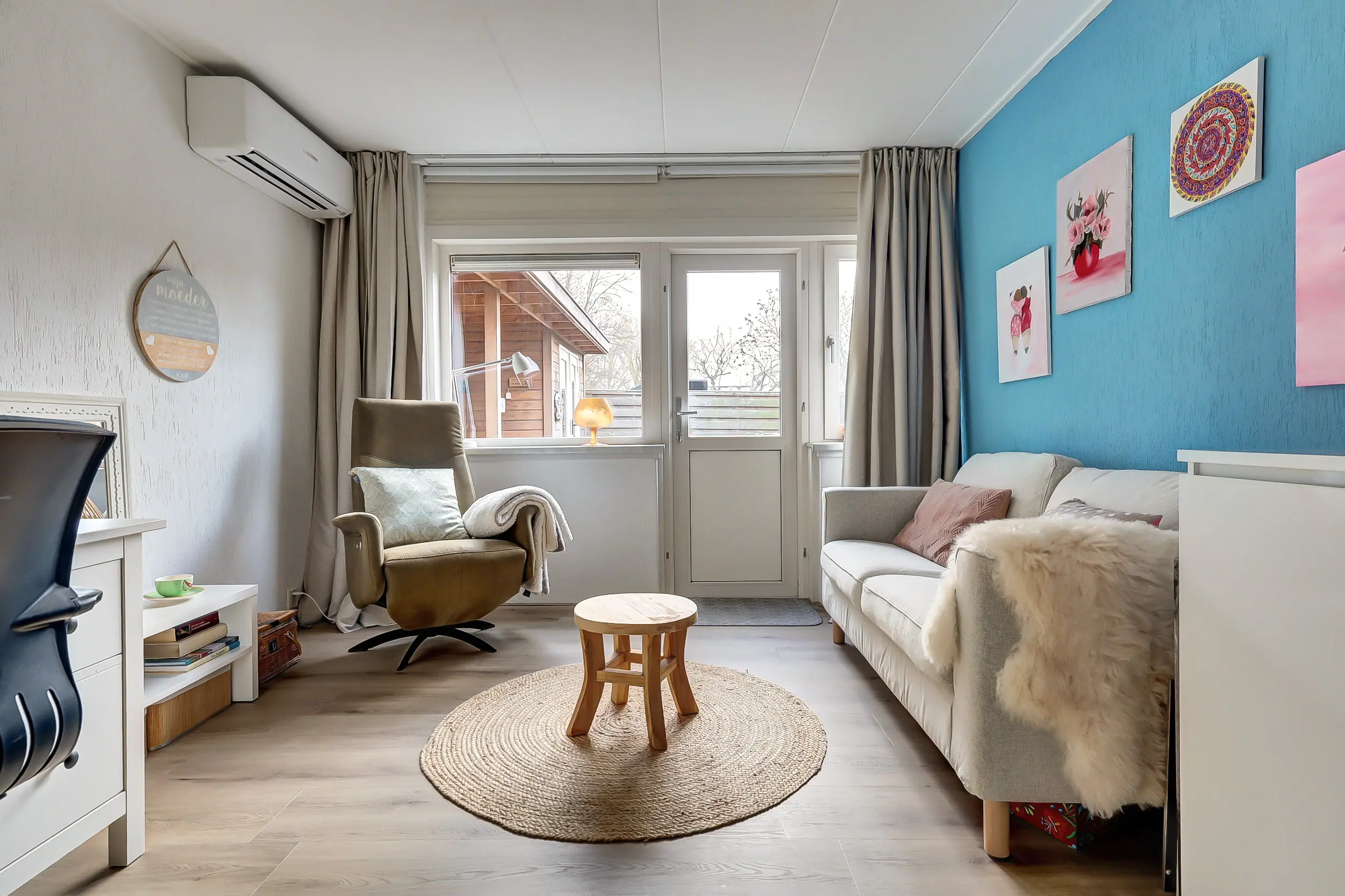 De woonkamer heeft een mooie lamelparket vloerafwerking en de slaapkamers een pvc vloer.