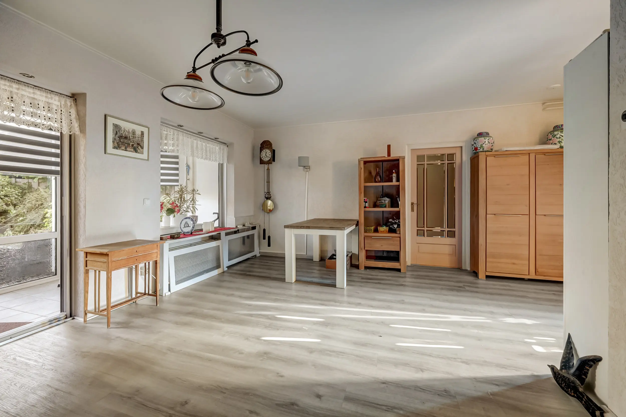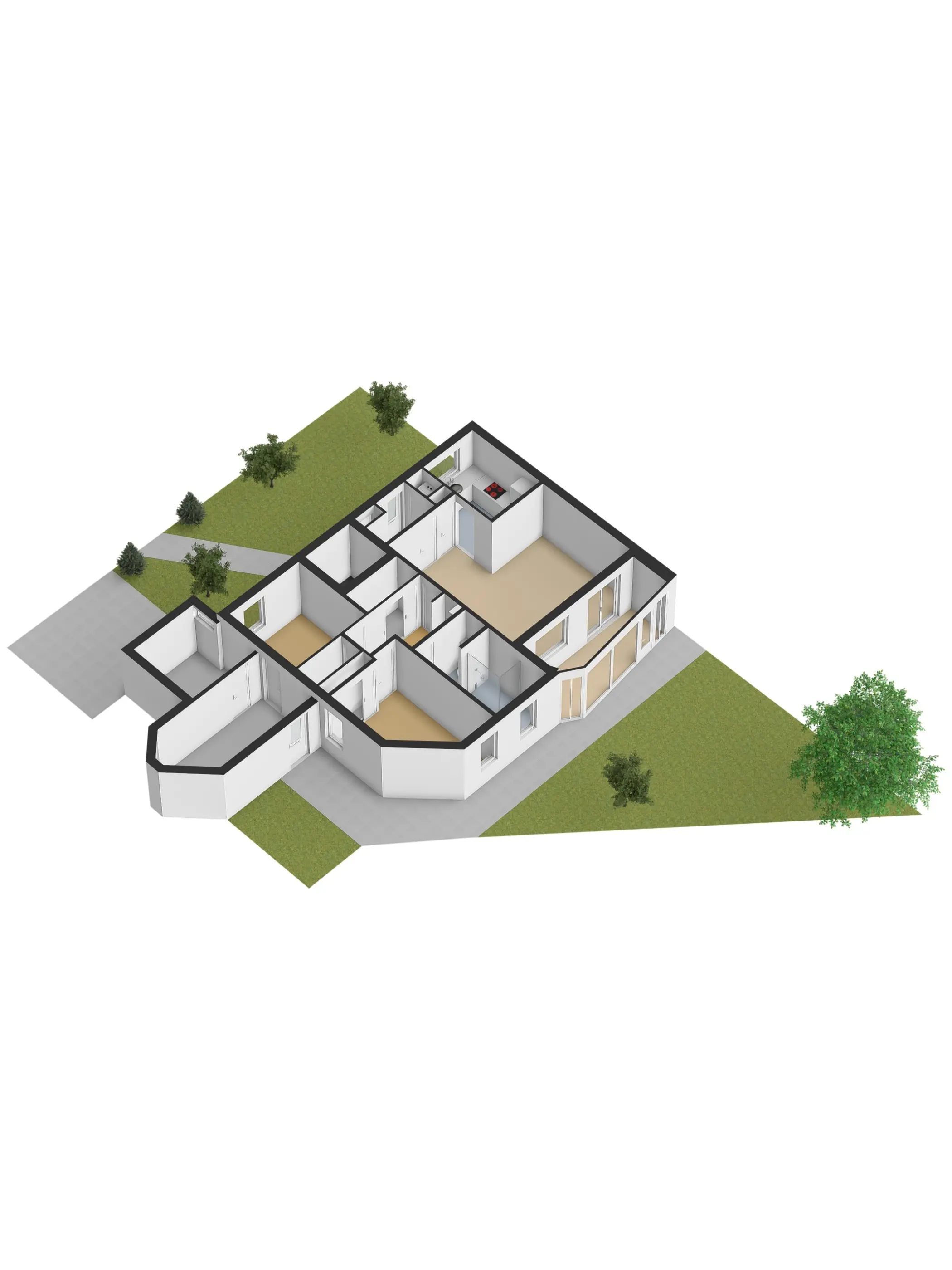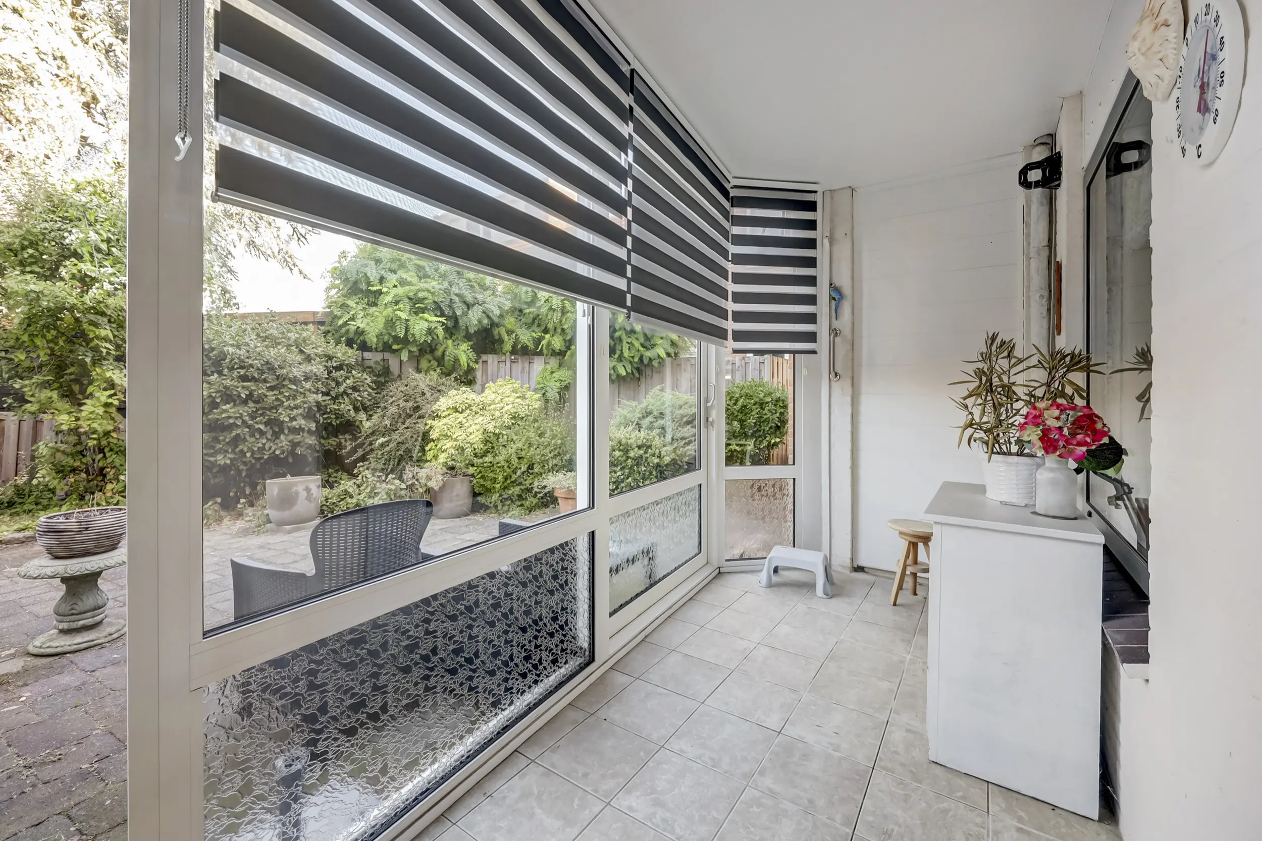 De woonkamer is vergroot door een serre aan de achterzijde, verder is de woning uitgevoerd met kunststof en aluminium kozijnen.