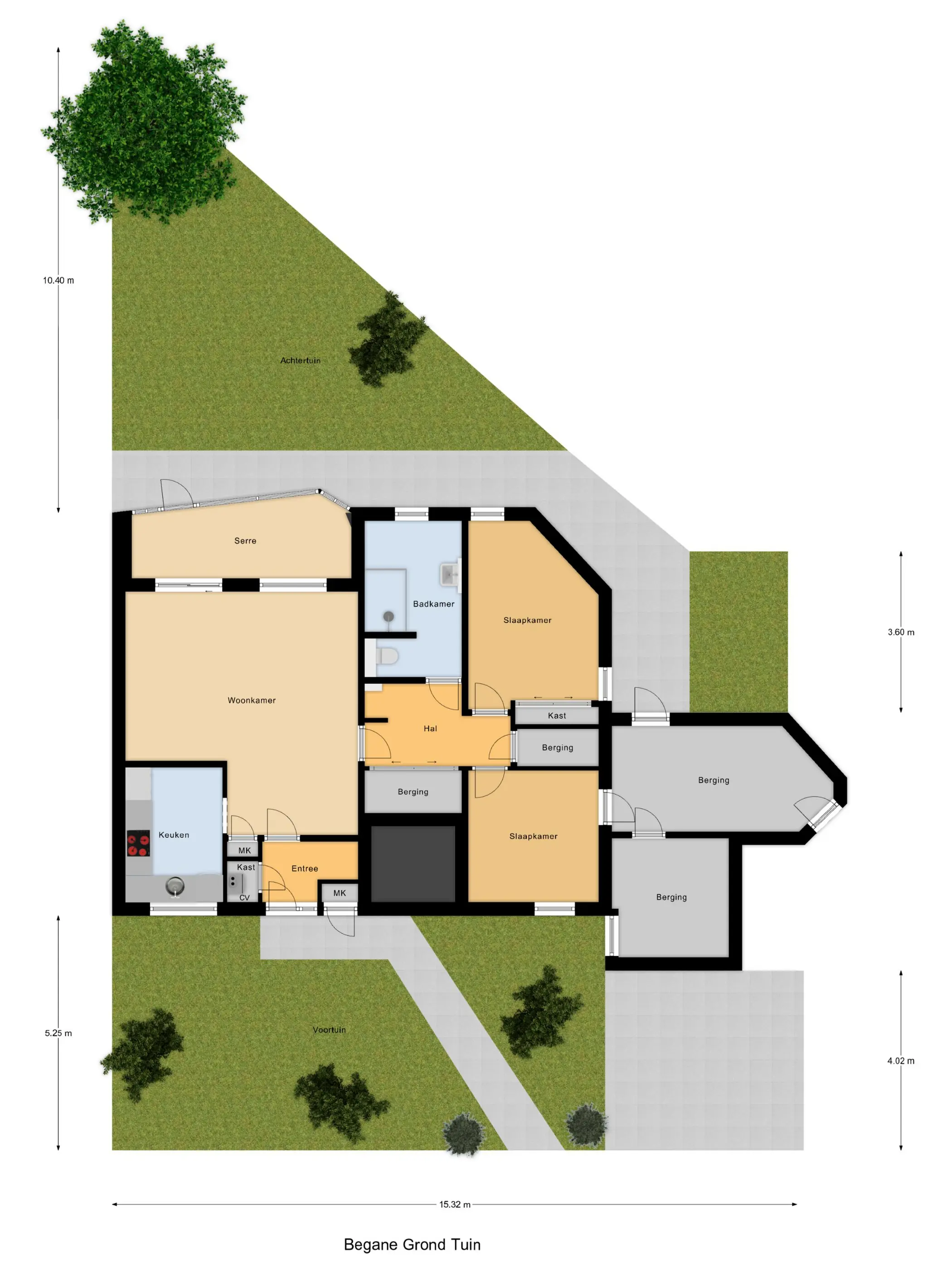 Zowel de voor- als achtertuin zijn ruim van opzet. Verder heeft de woning veel bergruimte door de 2 bergingen.