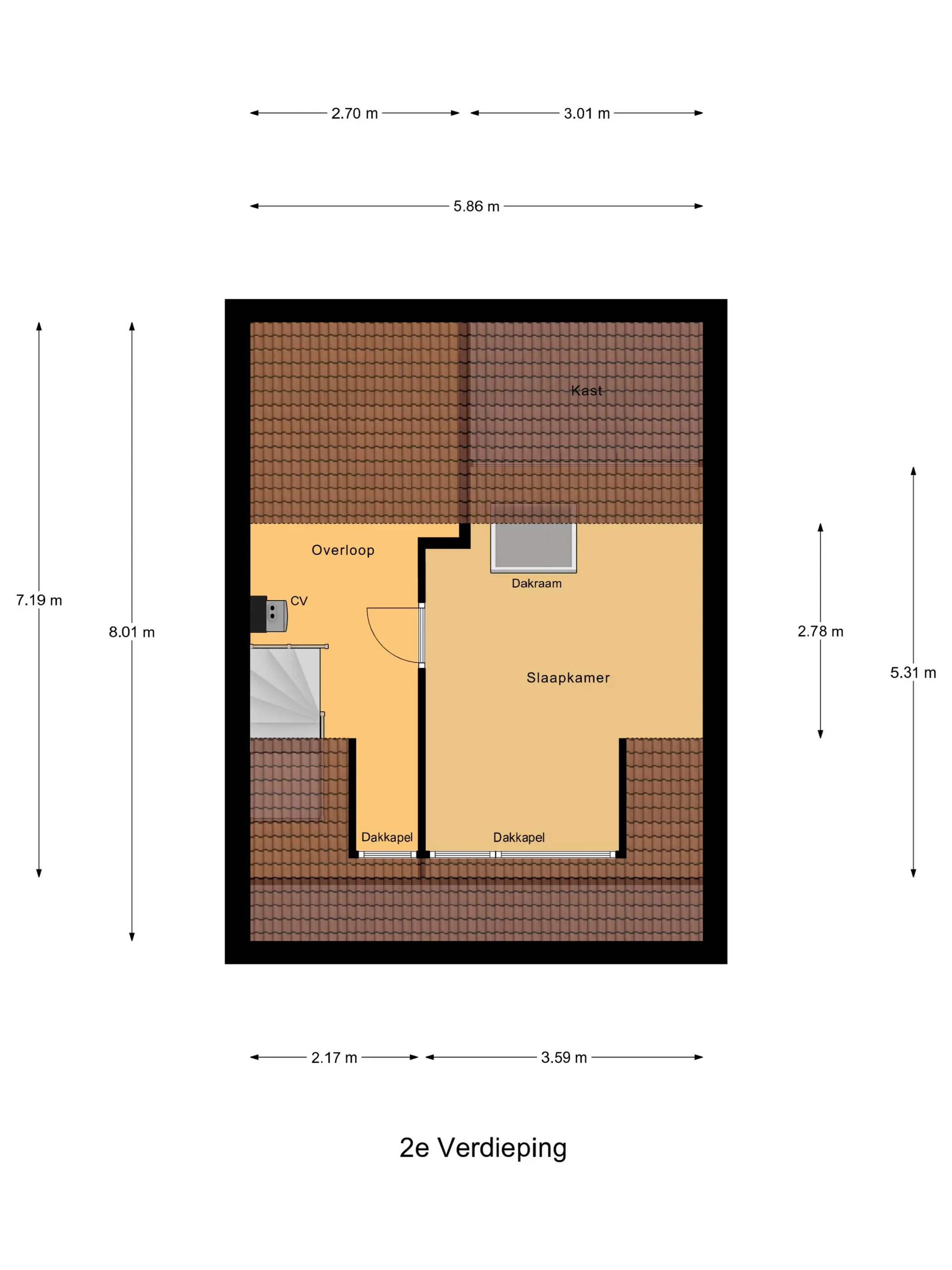 Op de 2e etage zijn de overloop en slaapkamer vergroot door een dakkapel aan de voorzijde. Hierdoor is een ruime 4e slaapkamer ontstaan, deze slaapkamer is ook voorzien van airconditioning.