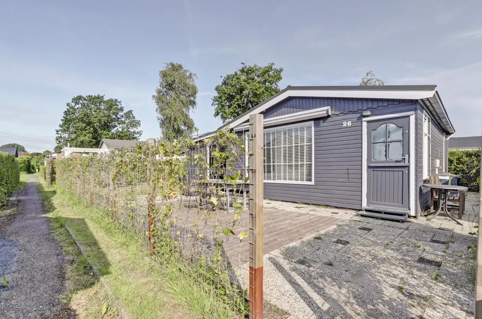 Aan een rustig pad gelegen recreatiewoning met drie slaapkamers en een grote veranda op een ruime plaats van circa 220 m2.