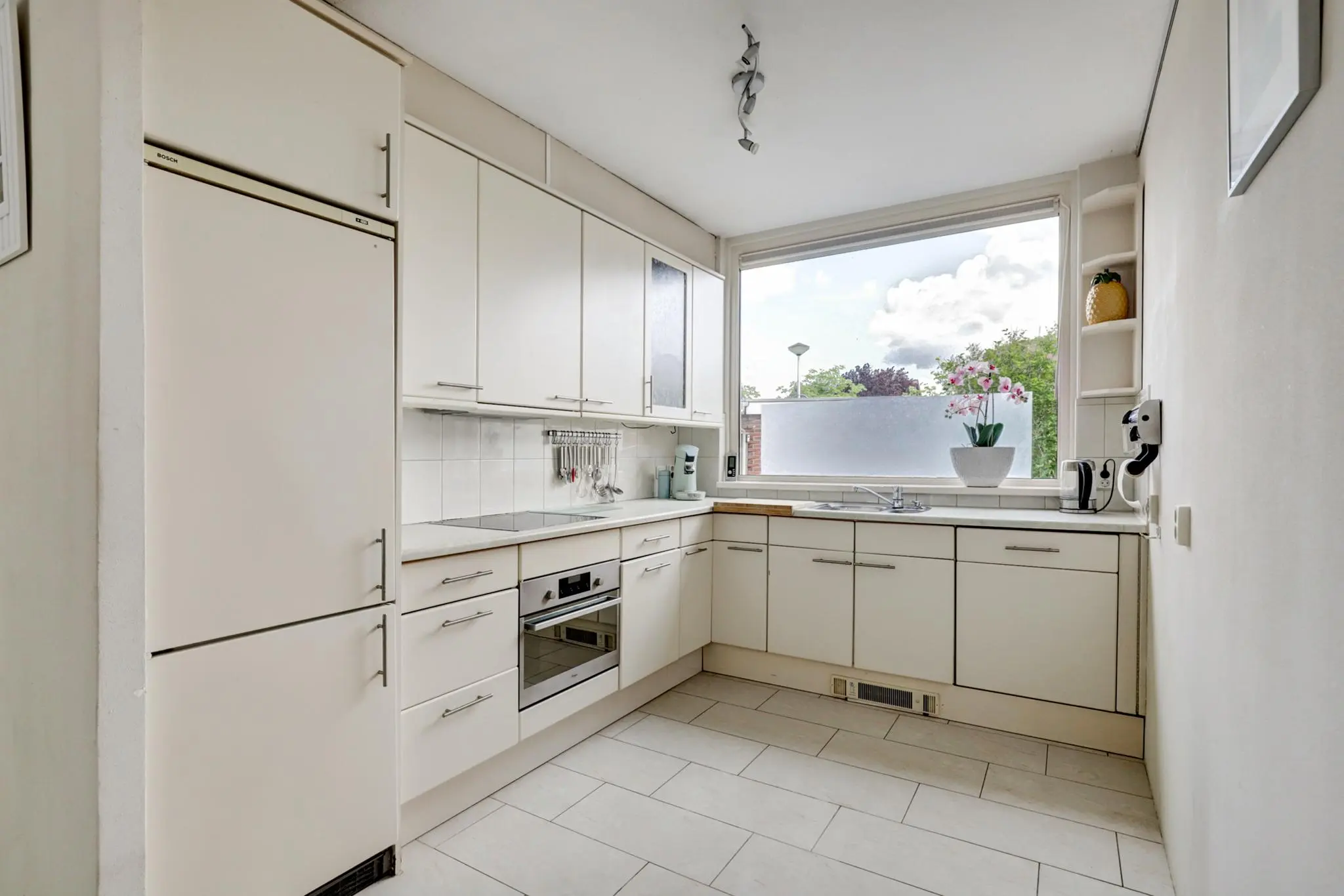 4e slaapkamer, veel bergruimte in de kasten, kapkant en bergvliering. Verder een ruim dakterras van 10m2, gelegen op de middag- en avondzon.