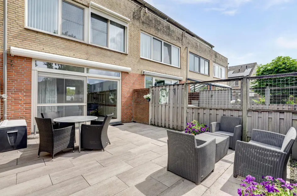 Het dakterras en de achtertuin liggen op het zonnige Zuidwesten. Voor de deur is er voldoende parkeergelegenheid.