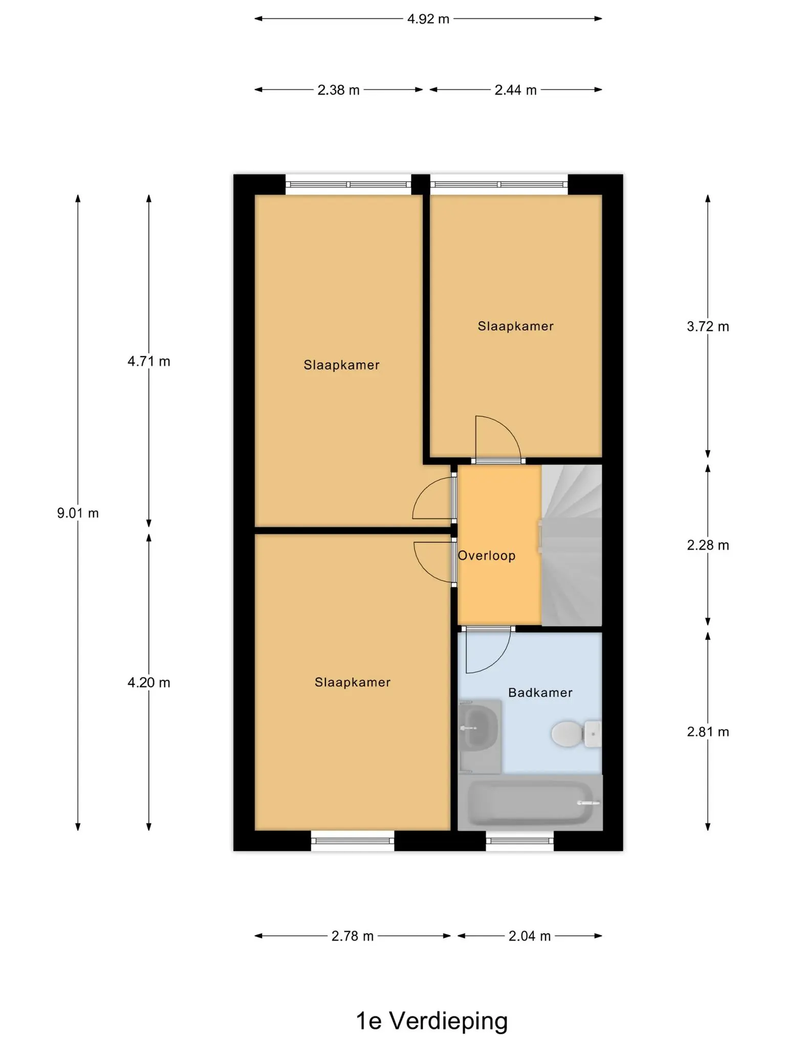 3 ruime slaapkamers, de badkamer is voorzien van een ligbad toilet en wastafelmeubel.