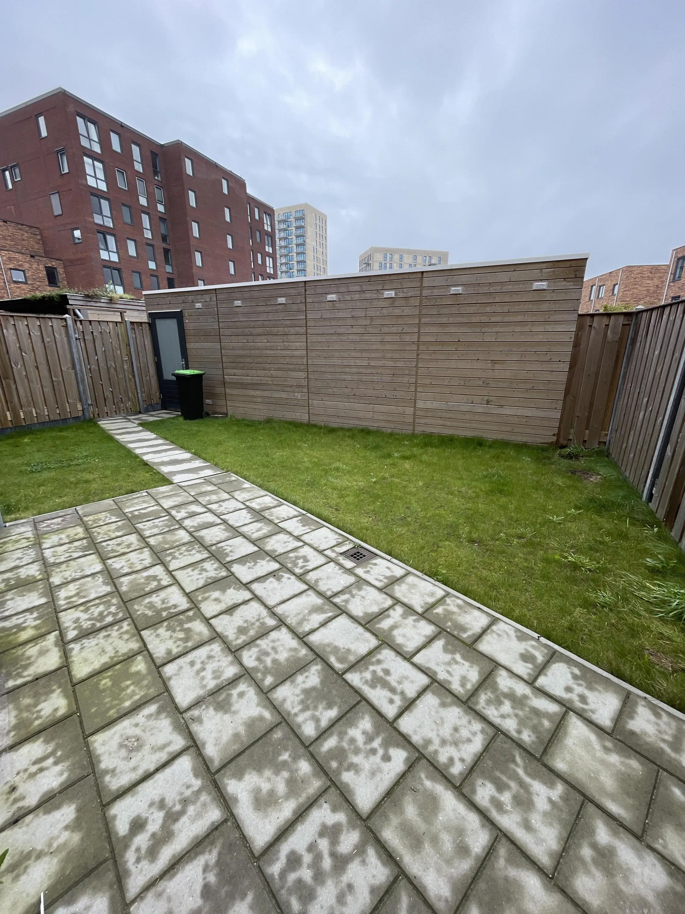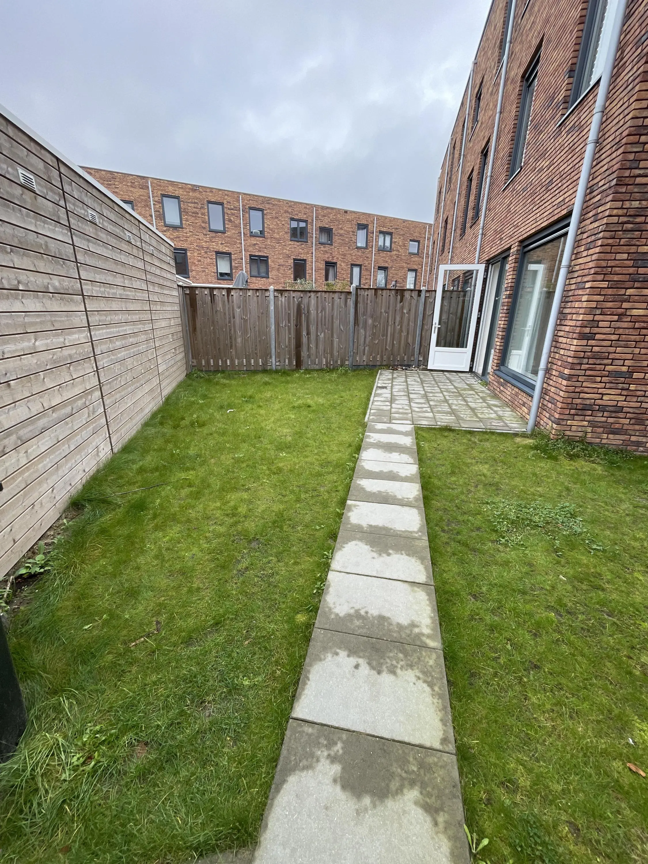 Iedere woning heeft een ruimte tuin, vanuit de woonkamer met deur bereikbaar. De tuin met schuur is gelegen op het zuiden en geeft o.a. toegang tot het binnenterrein.