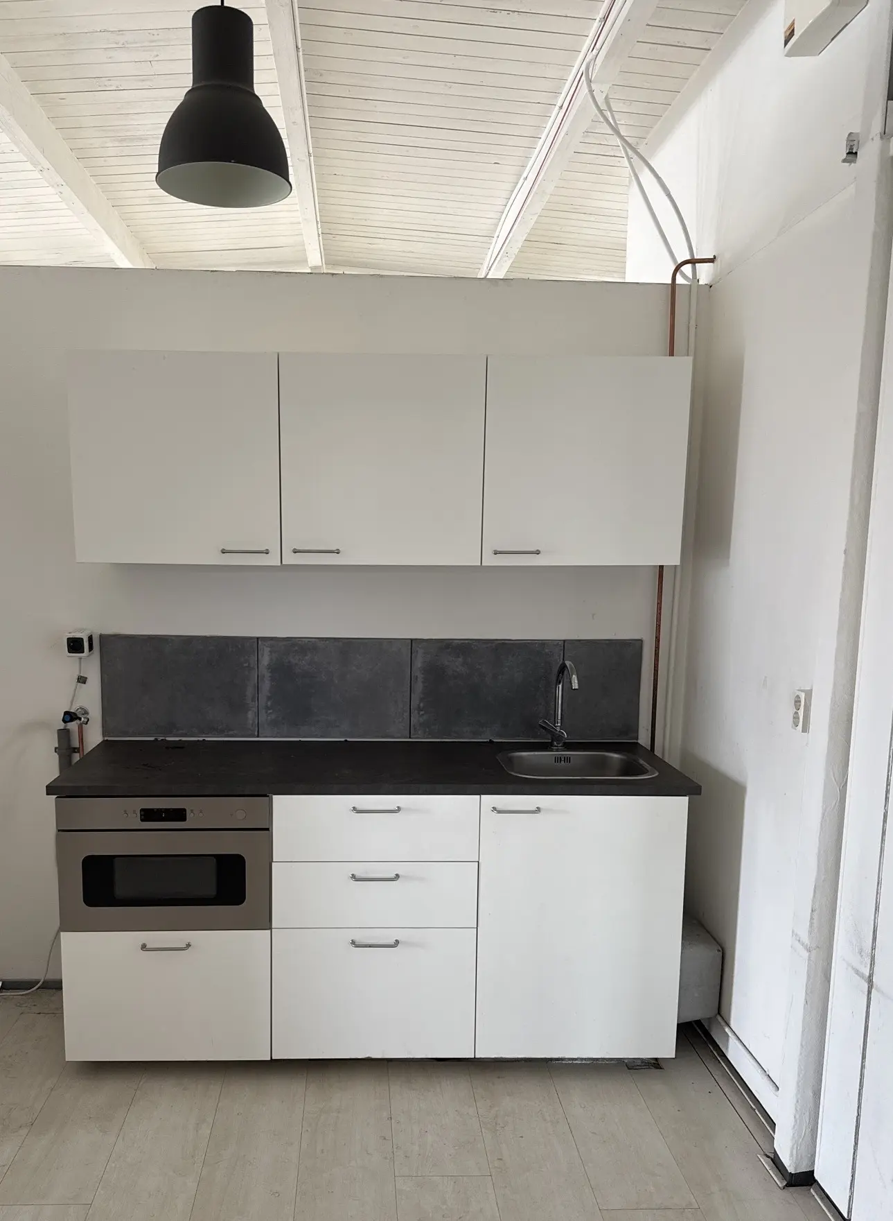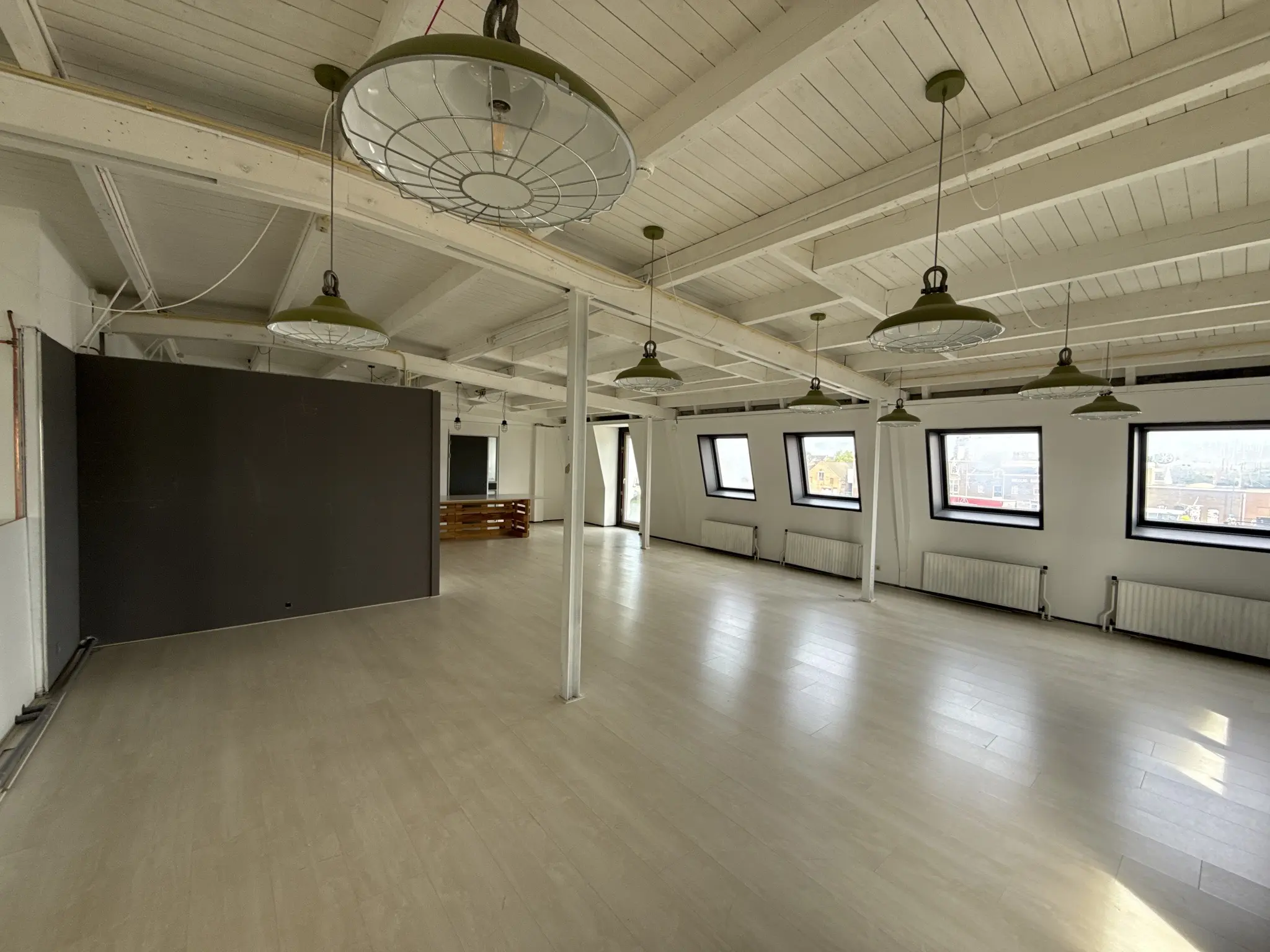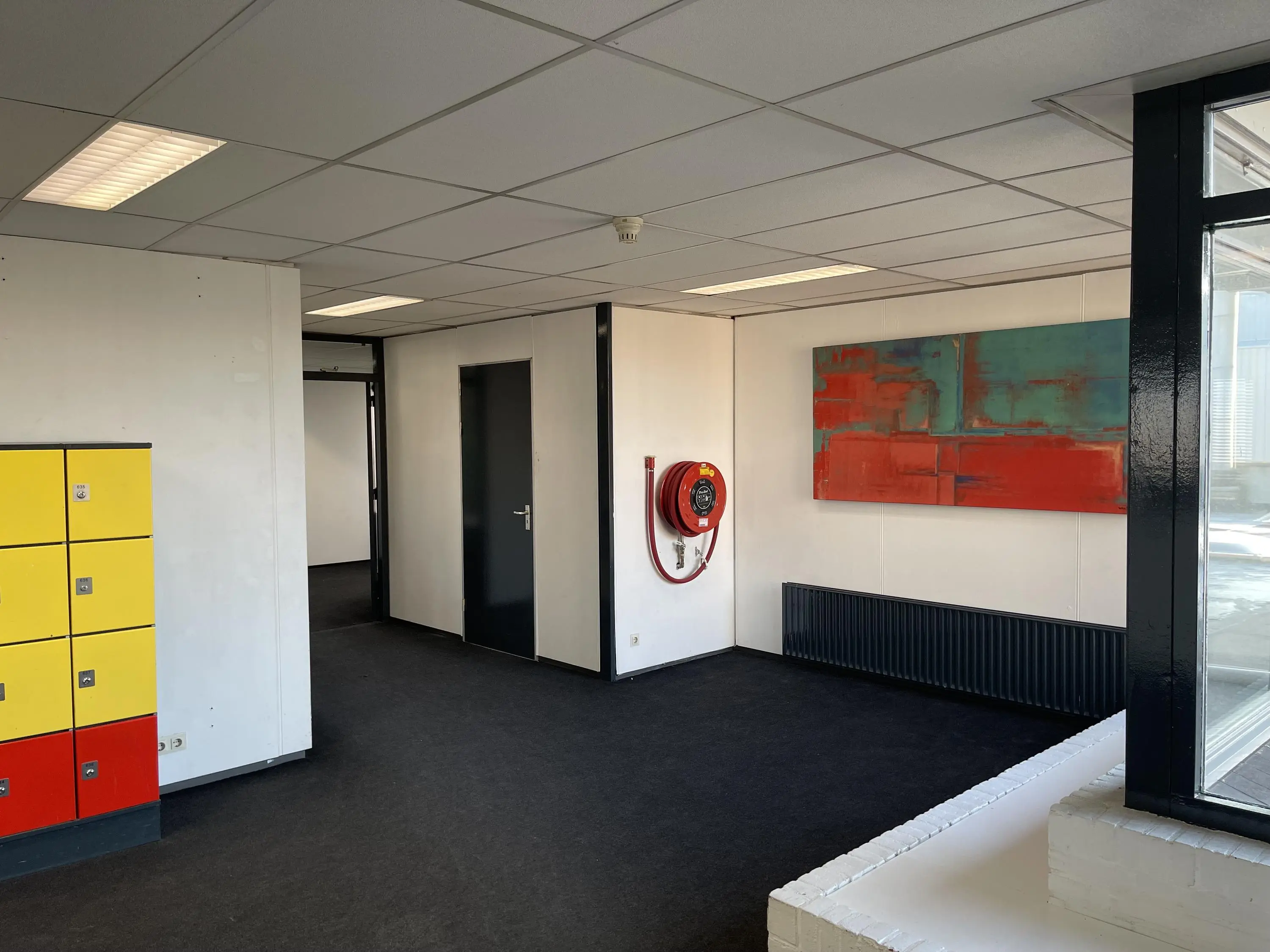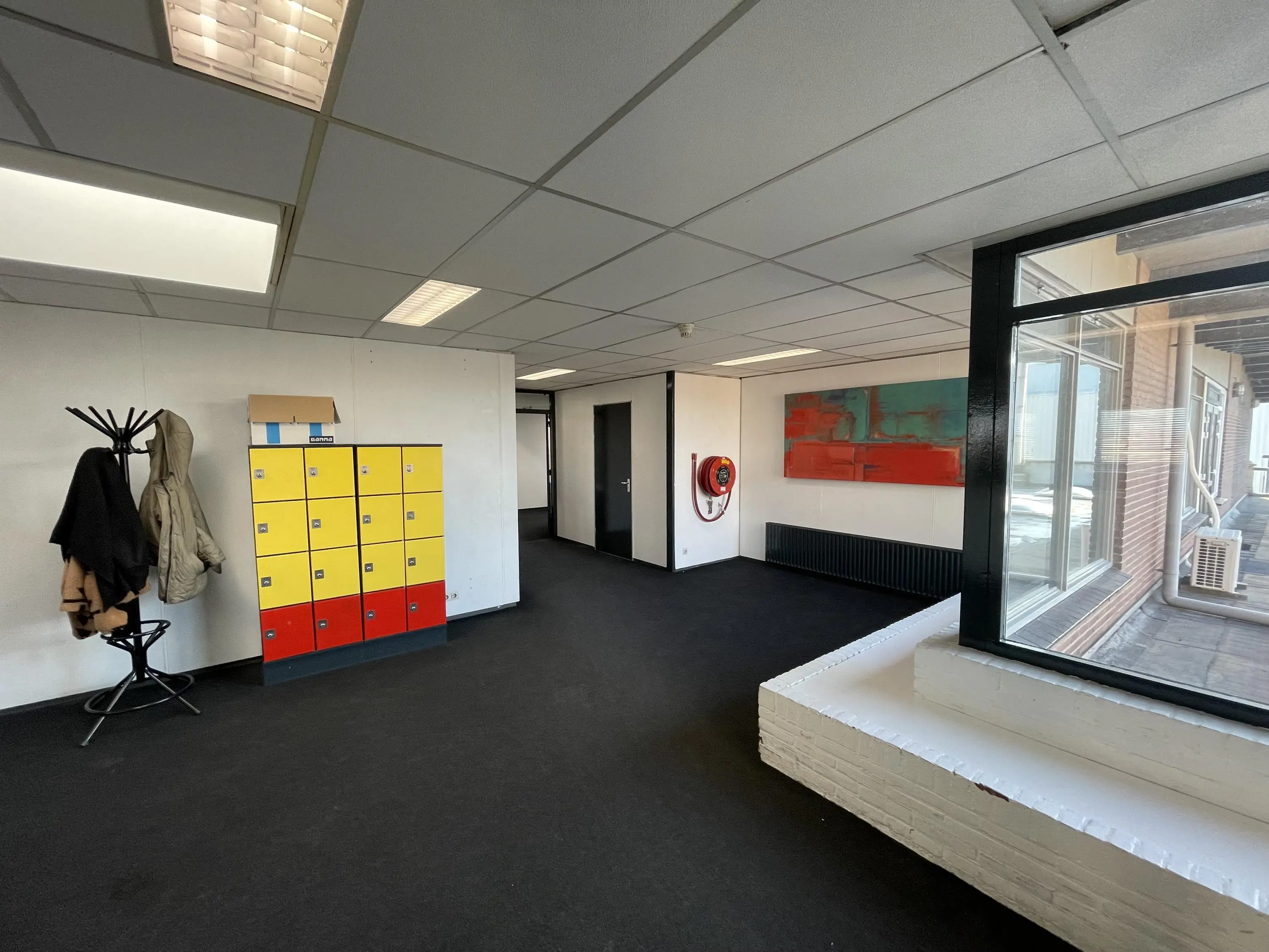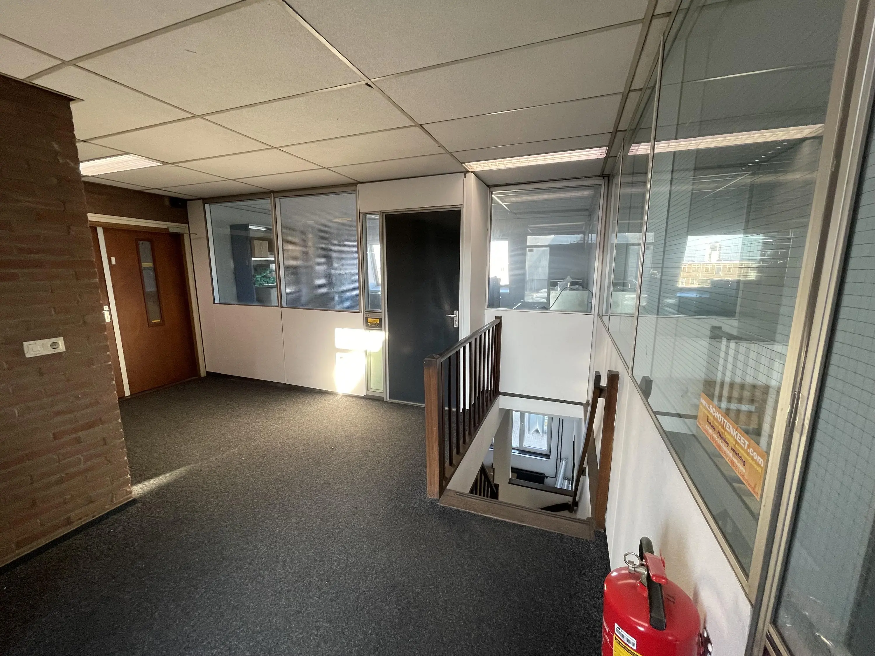 Het kantoor bevindt zich op de bovenste (tweede) etage en kenmerkt zich door veel natuurlijk lichtinval door de aanwezigheid van de vele raampartijen. In de ruimte zijn ook een airco unit alsmede keuken (inclusief magnetron) aanwezig!
