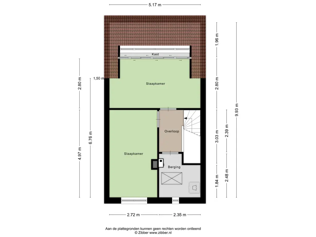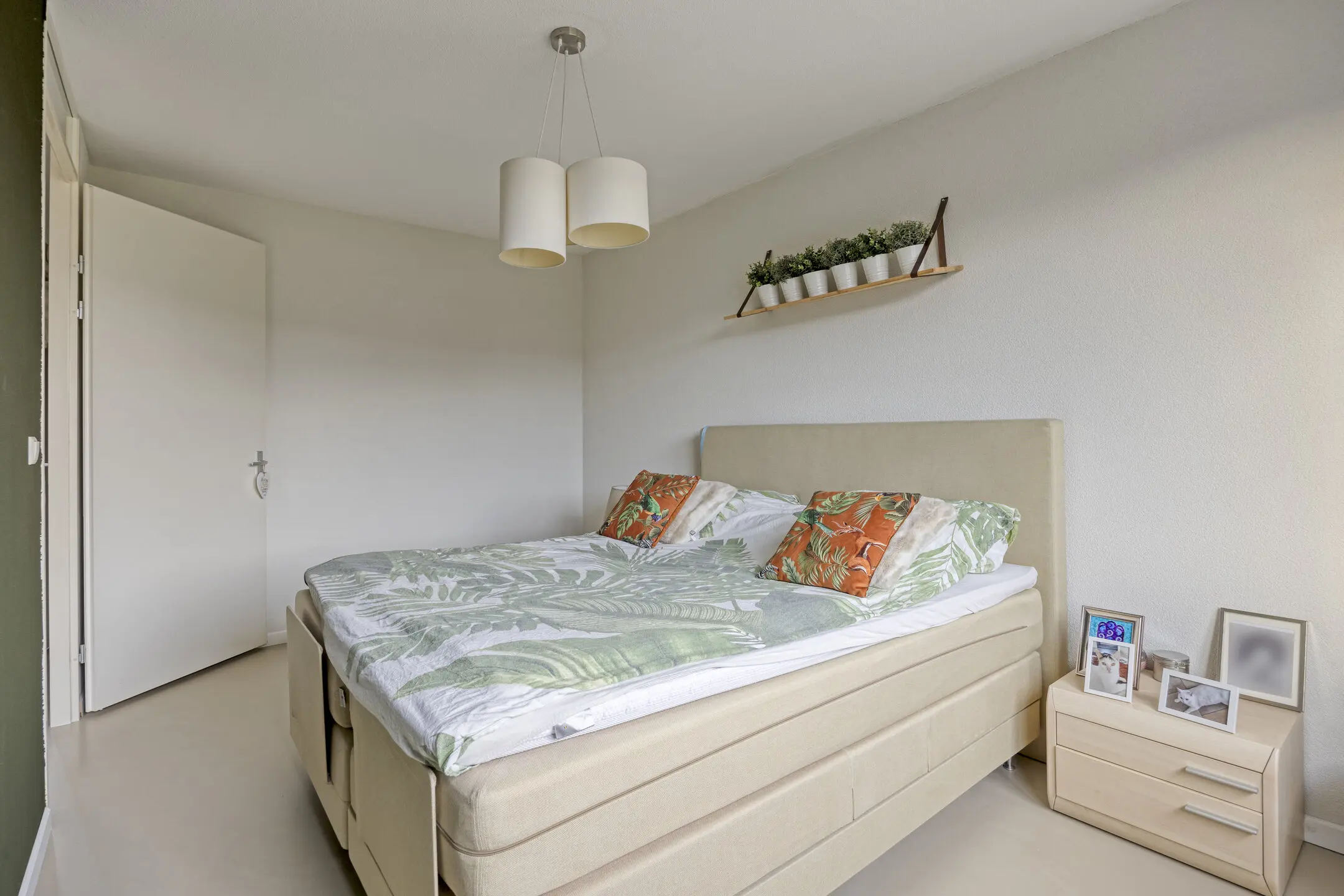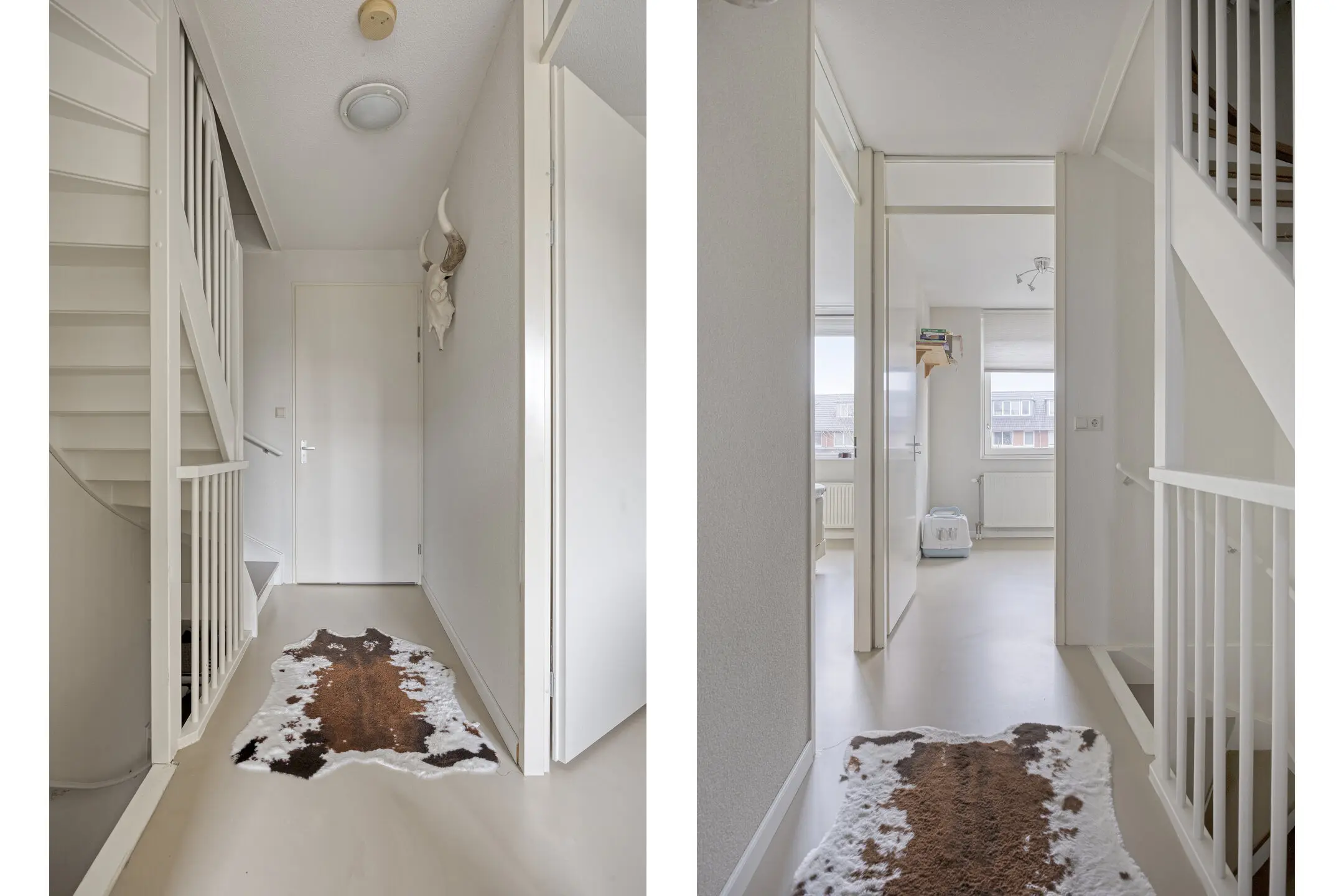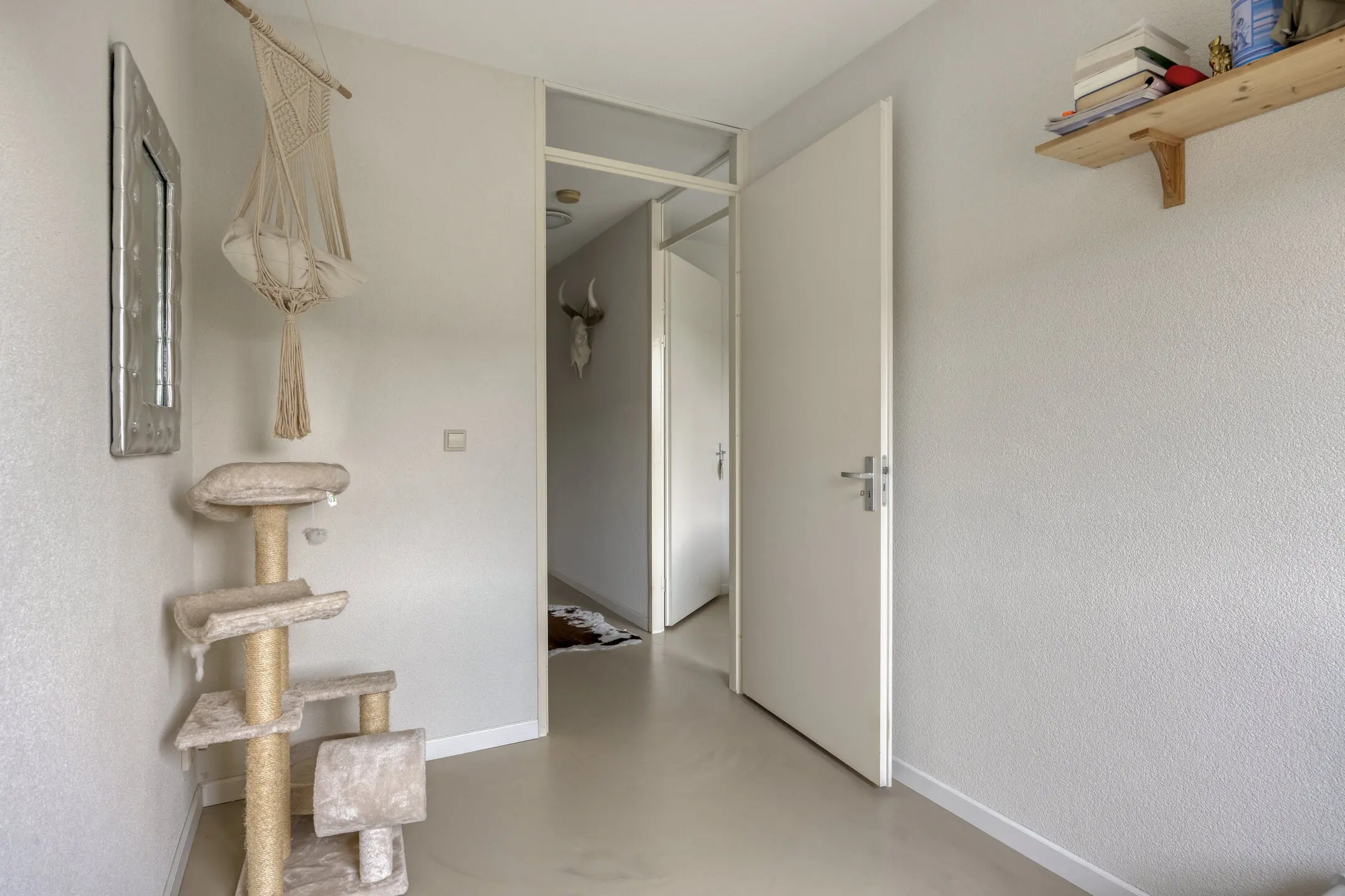 De overloop geeft toegang tot twee ruime slaapkamers en de badkamer. De slaapkamers zijn gelegen aan de achterzijde van de woning.