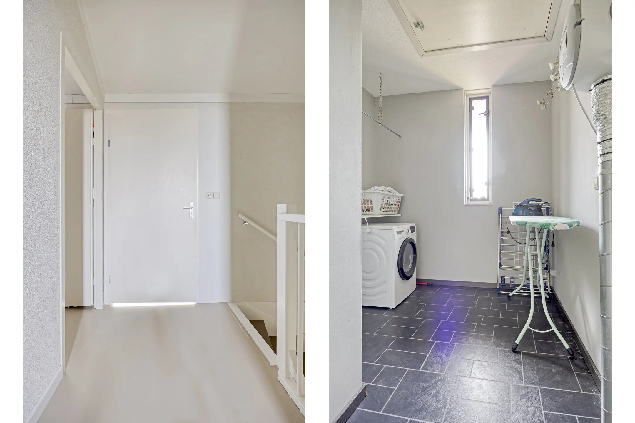 Op de tweede verdieping bevinden zich nog eens twee ruime slaapkamers. Op de overloop is een aparte wasruimte ingericht met aansluitingen voor wasmachine en droger. Via een vlizotrap is bovendien de praktische vliering bereikbaar.