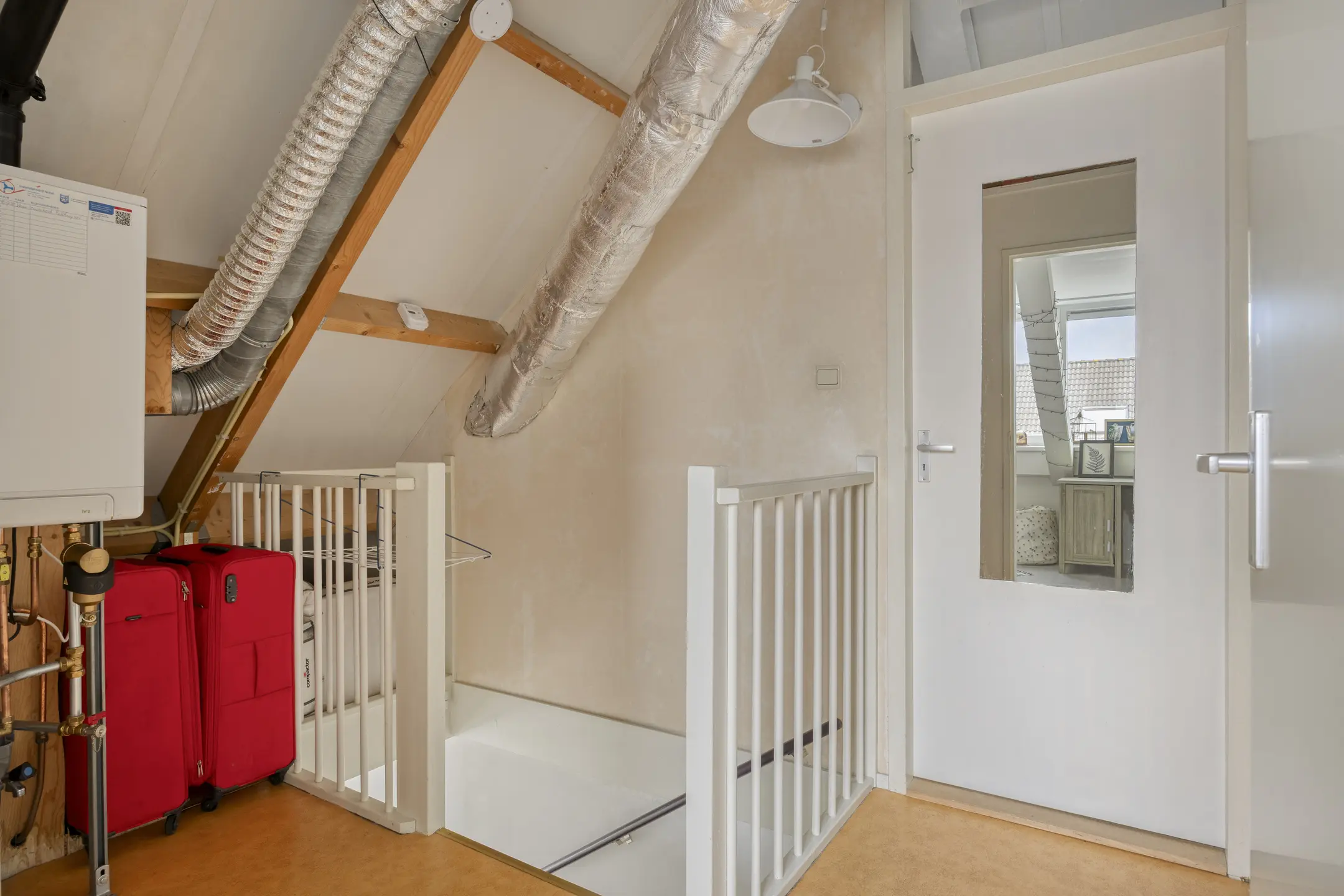 Op de voorzolder bevindt zich de opstelling van de C.V.-ketel.