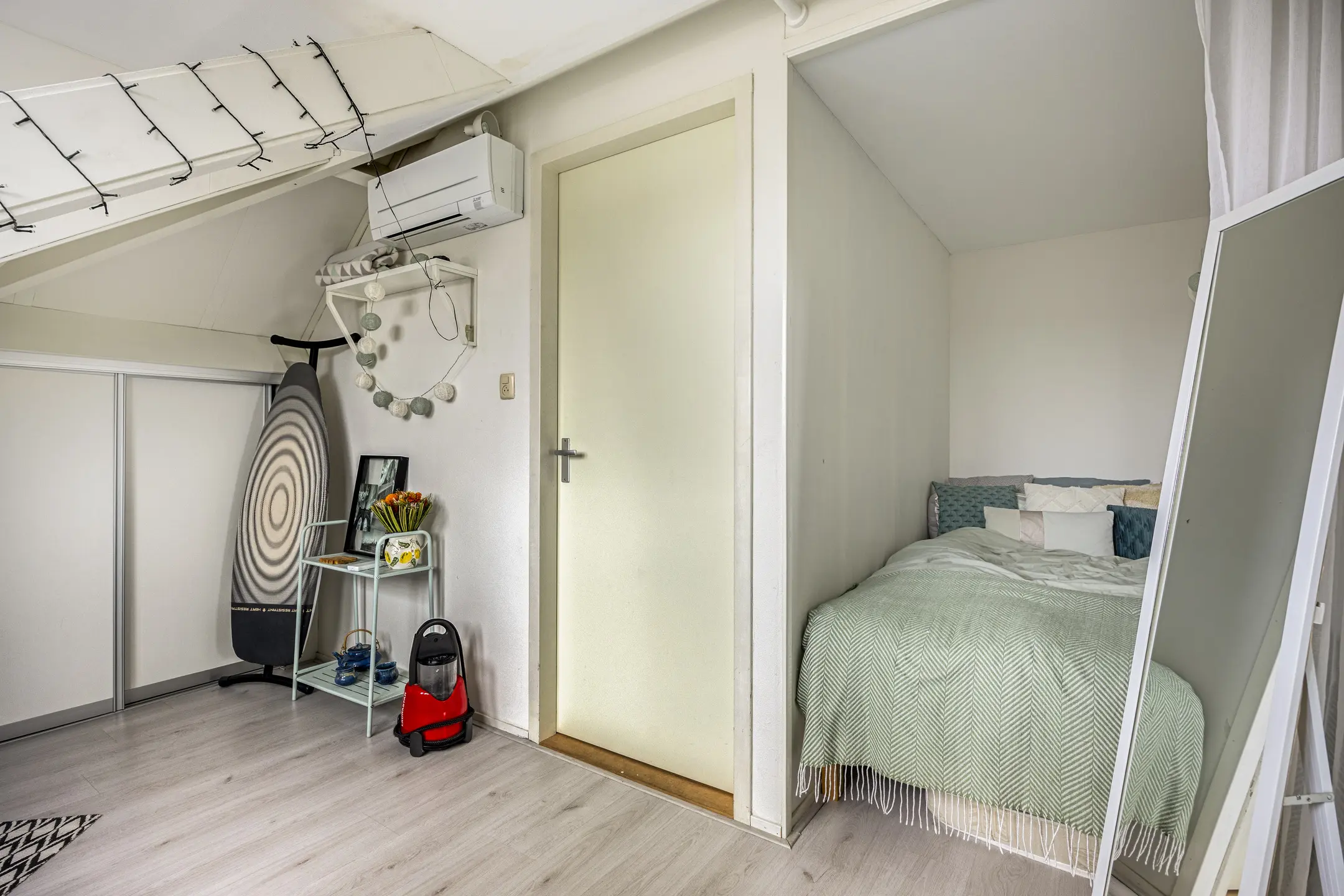 Verder zijn hier twee slaapkamers gerealiseerd, beide voorzien van prettig daglicht en airconditioning. Eén slaapkamer beschikt over een dakkapel, inbouwkast en knieschotberging; de andere over een dakraam en eveneens knieschotberging.