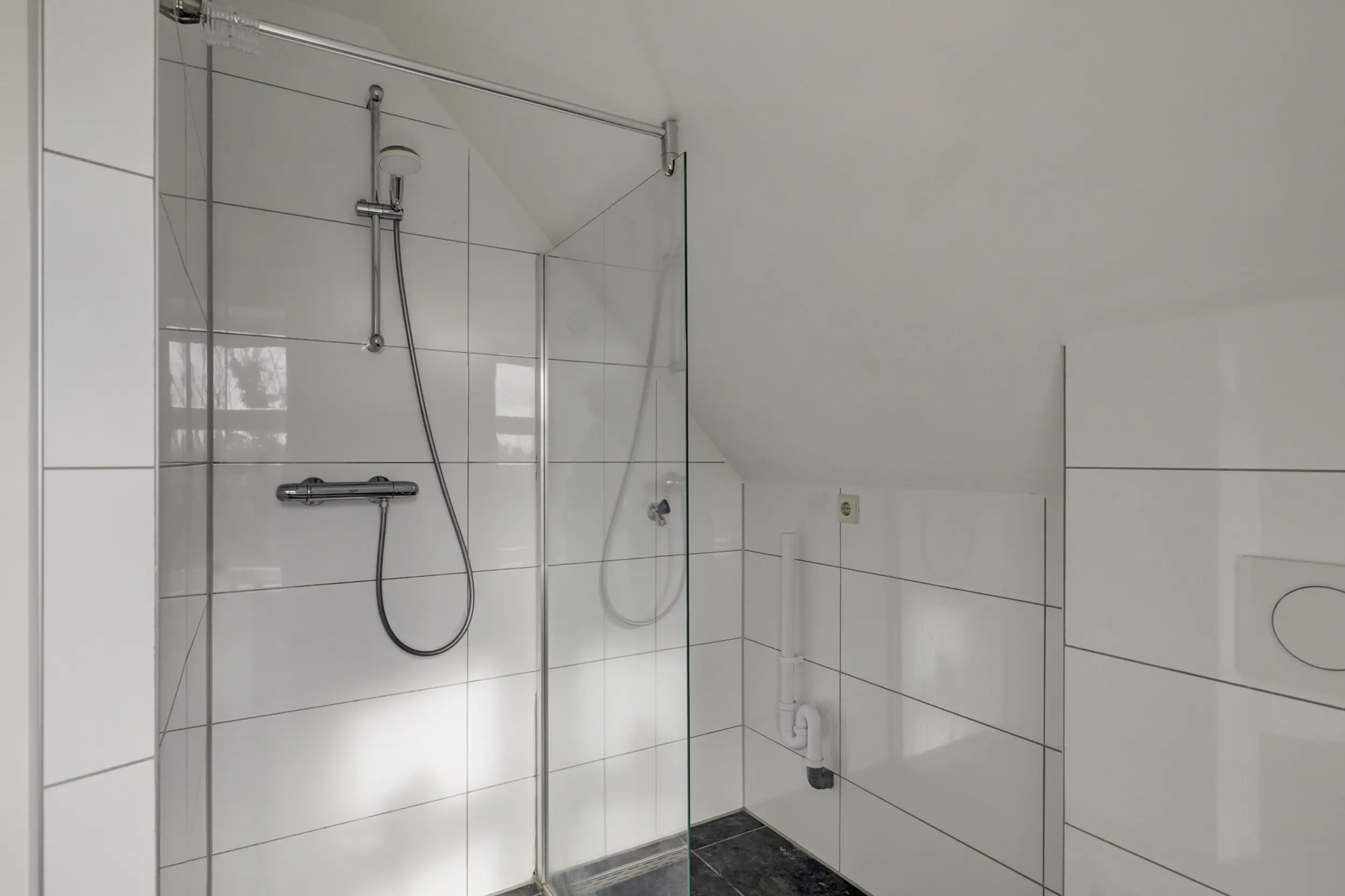 De badkamer is strak uitgevoerd en voorzien van een inloopdouche, wastafel en toilet. Daarnaast is de woning volledig uitgerust met kunststof kozijnen met dubbele beglazing, wat bijdraagt aan comfort, isolatie en onderhoudsgemak.