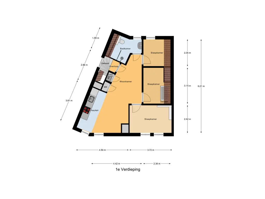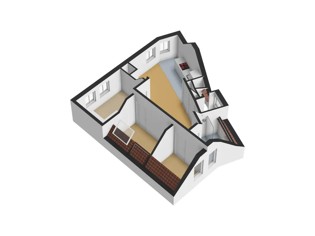 Het appartement beschikt over drie slaapkamers, die flexibel zijn in te delen als slaap-, werk- of hobbyruimte.