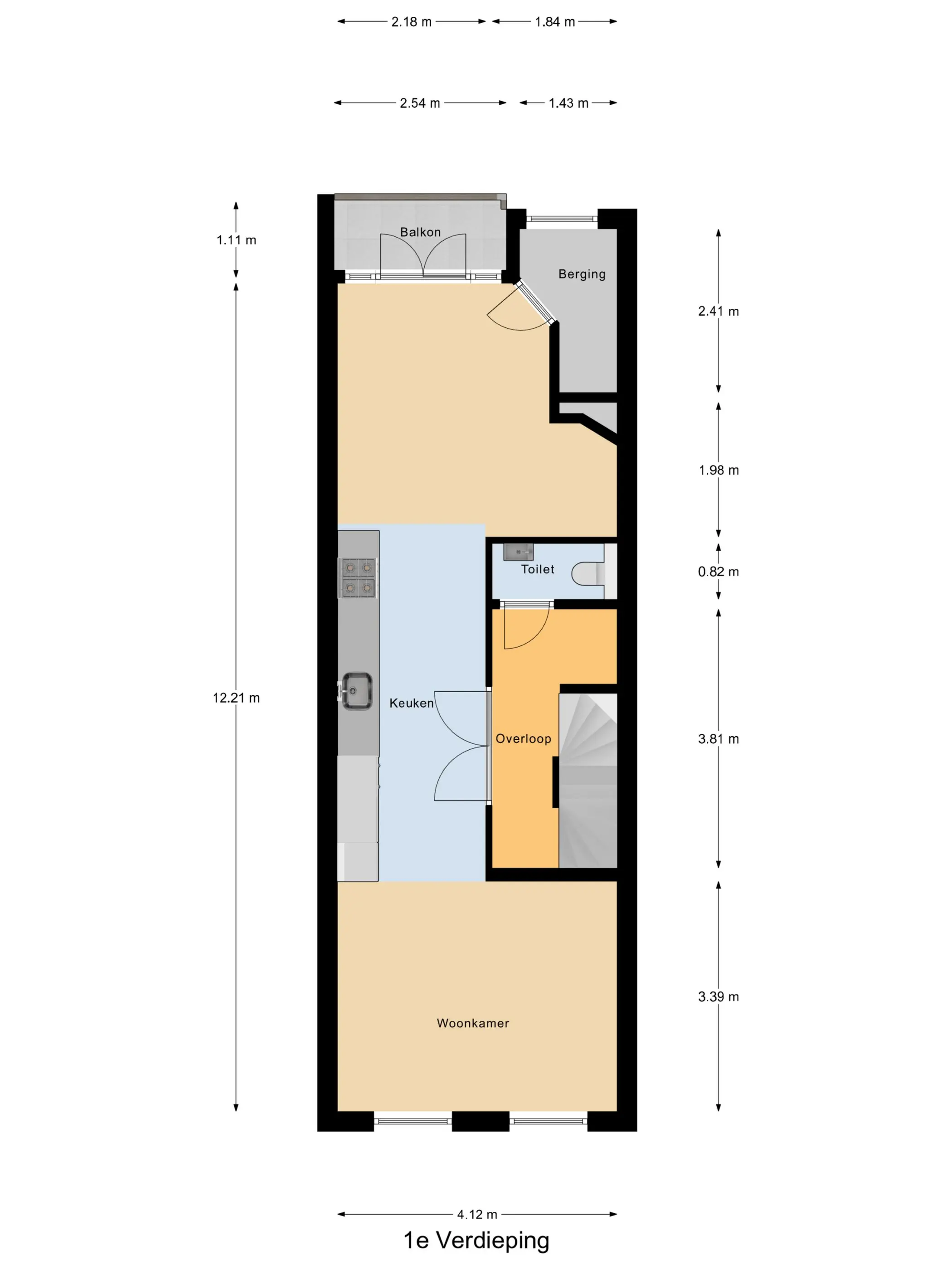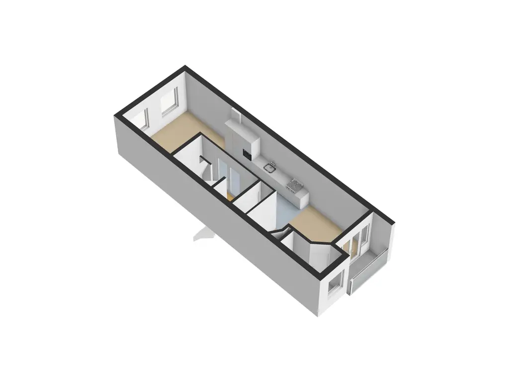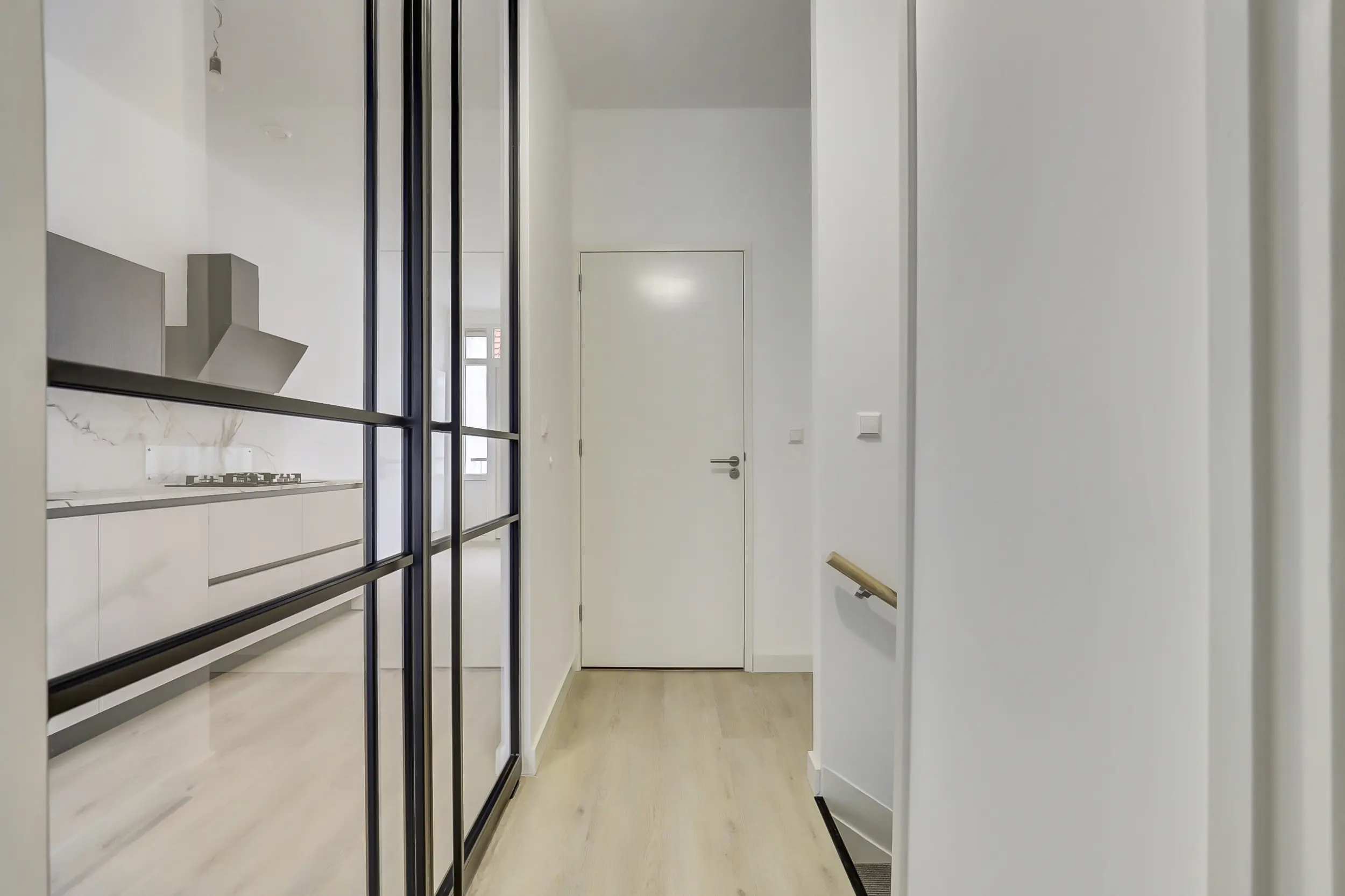 Via de gezamenlijke trapopgang bereikt u de woning op de tweede verdieping, waar u binnenkomt in de eigen entree. Vanuit de ruime hal heeft u toegang tot de lichte, speels ingedeelde woonkamer met open keuken. De keuken vormt een natuurlijke verbinding tussen de twee leefruimtes op deze verdieping en is modern en licht uitgevoerd, voorzien van diverse inbouwapparatuur.