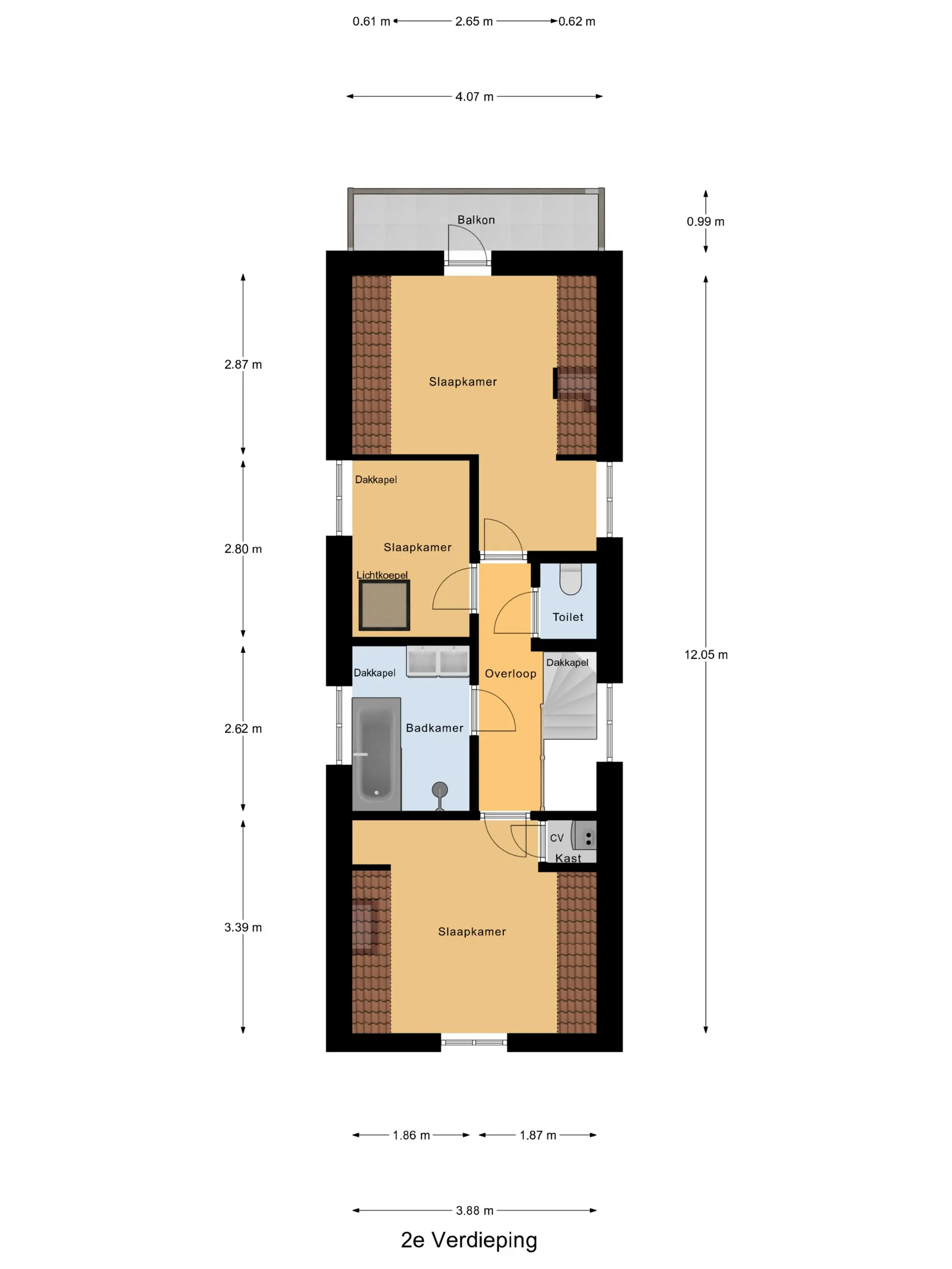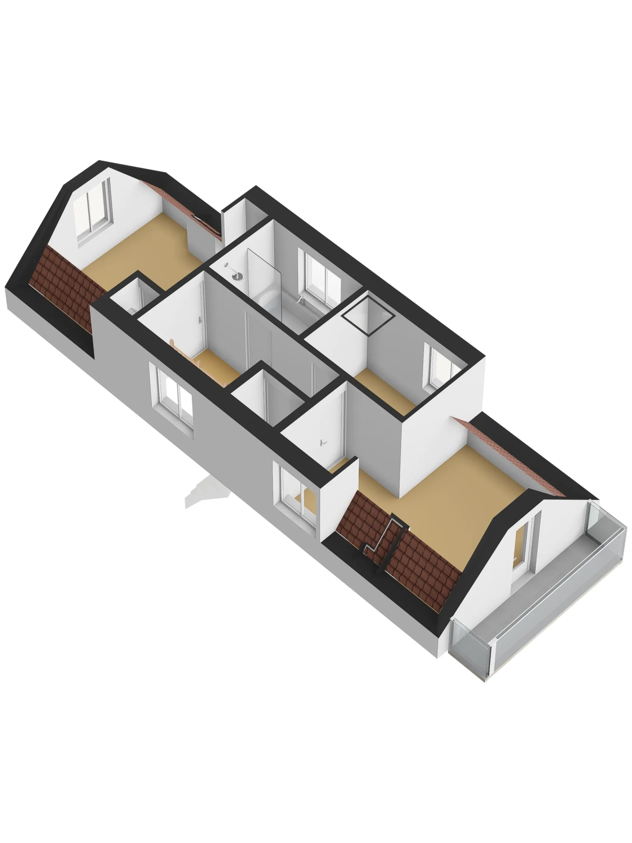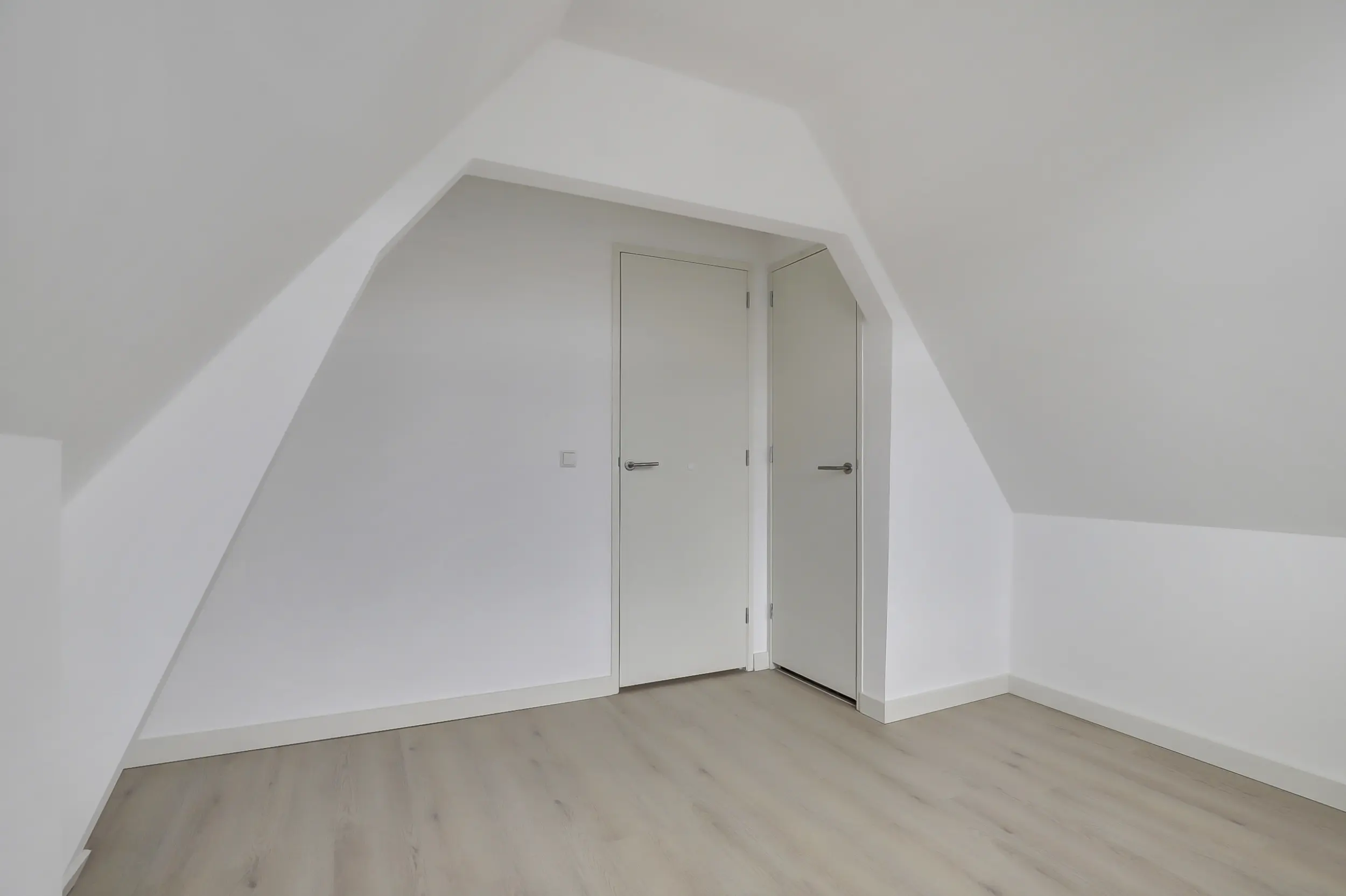 De derde verdieping beschikt over een overloop met toegang tot drie slaapkamers. Twee ruime slaapkamers zijn speels ingedeeld en hebben de zichtbare kapconstructie, wat zorgt voor een authentieke uitstraling in een modern jasje. Vanuit de slaapkamer aan de achterzijde is het tweede balkon bereikbaar. De derde slaapkamer ligt centraal in de woning en wordt dankzij een lichtkoepel voorzien van extra daglicht en een ruimtelijk gevoel.