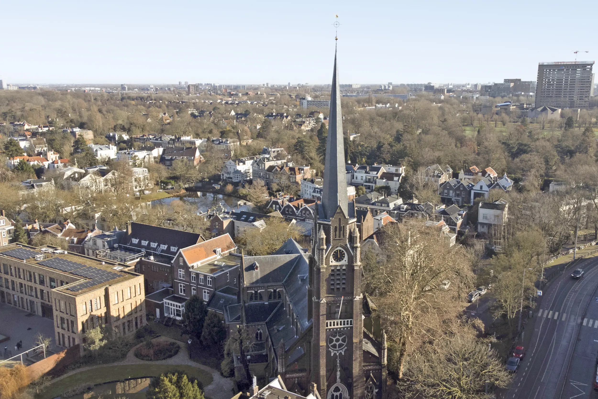 aan rustige weg, in woonwijk, vrij uitzicht