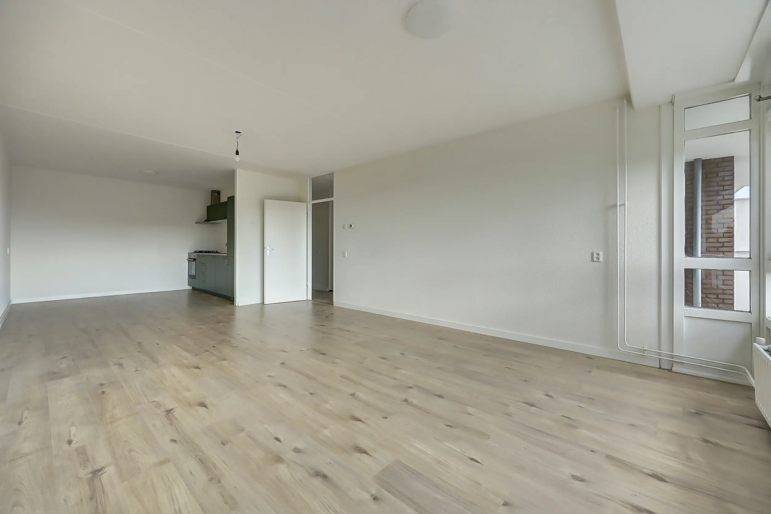 De ruime woonkamer gelegen aan de achterzijde van de woning valt direct op door de grote raampartijen die zorgen voor veel natuurlijk licht. Aangrenzend ligt de moderne open keuken, in 2025 geplaatst en uitgerust met diverse inbouwapparatuur.