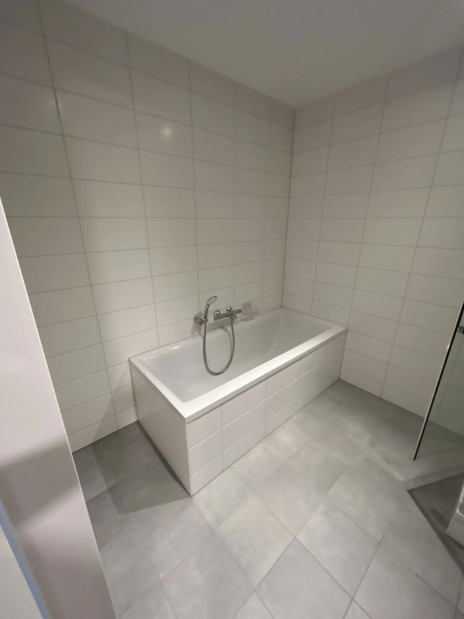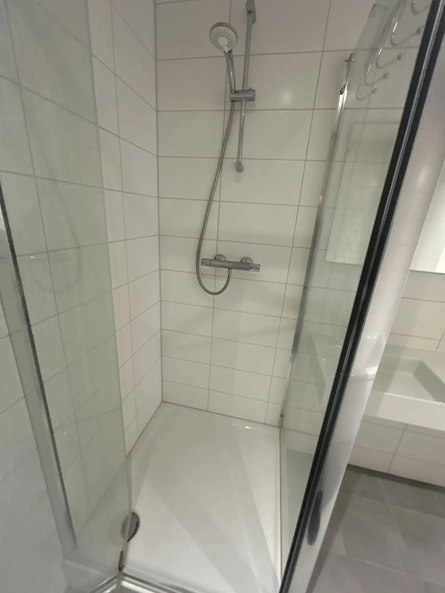 In de badkamer geniet je de luxe van een dubbele wastafel, een ruime douche en een heerlijk ligbad. Het toilet bevindt zich separaat in de woning.