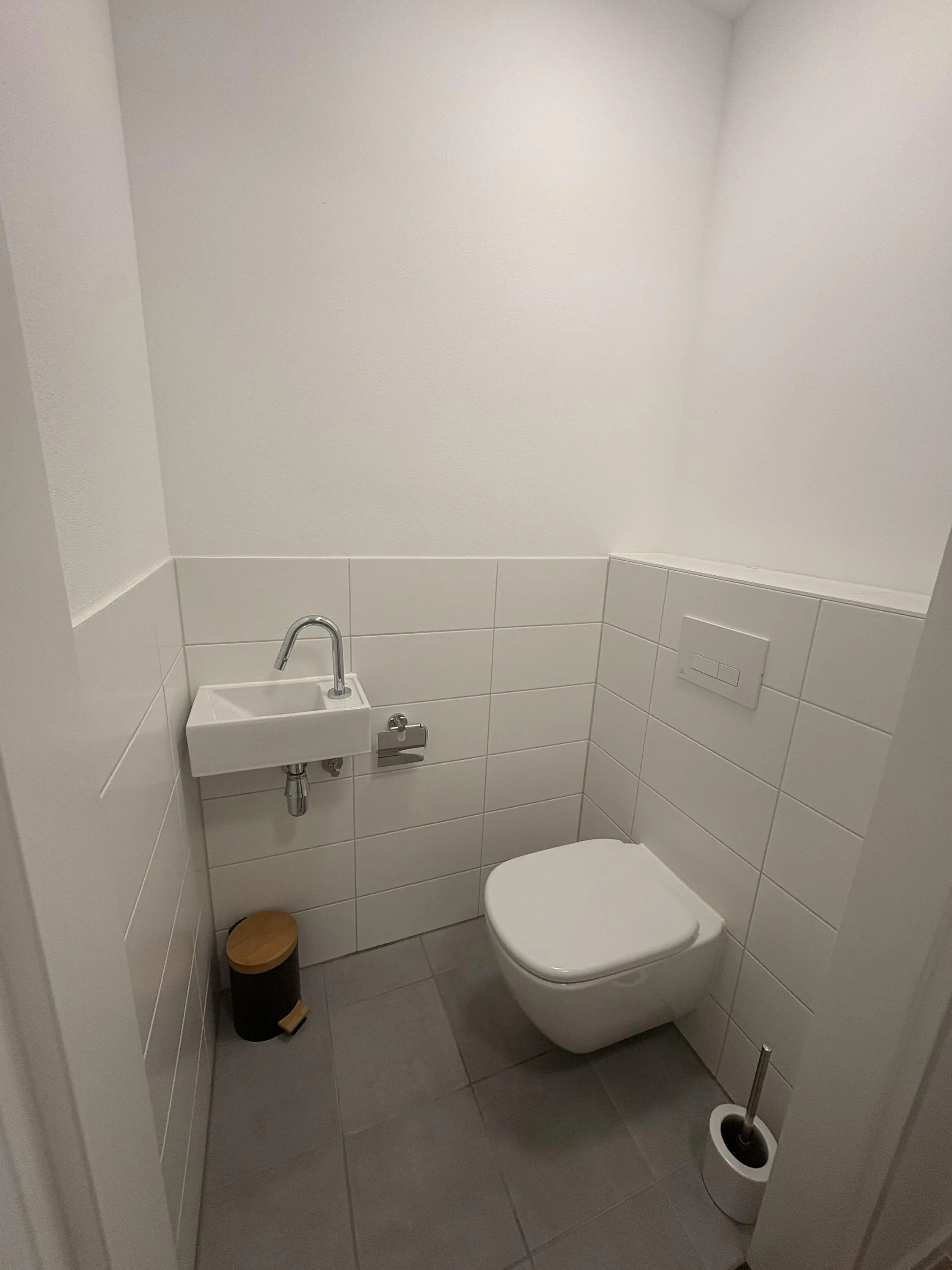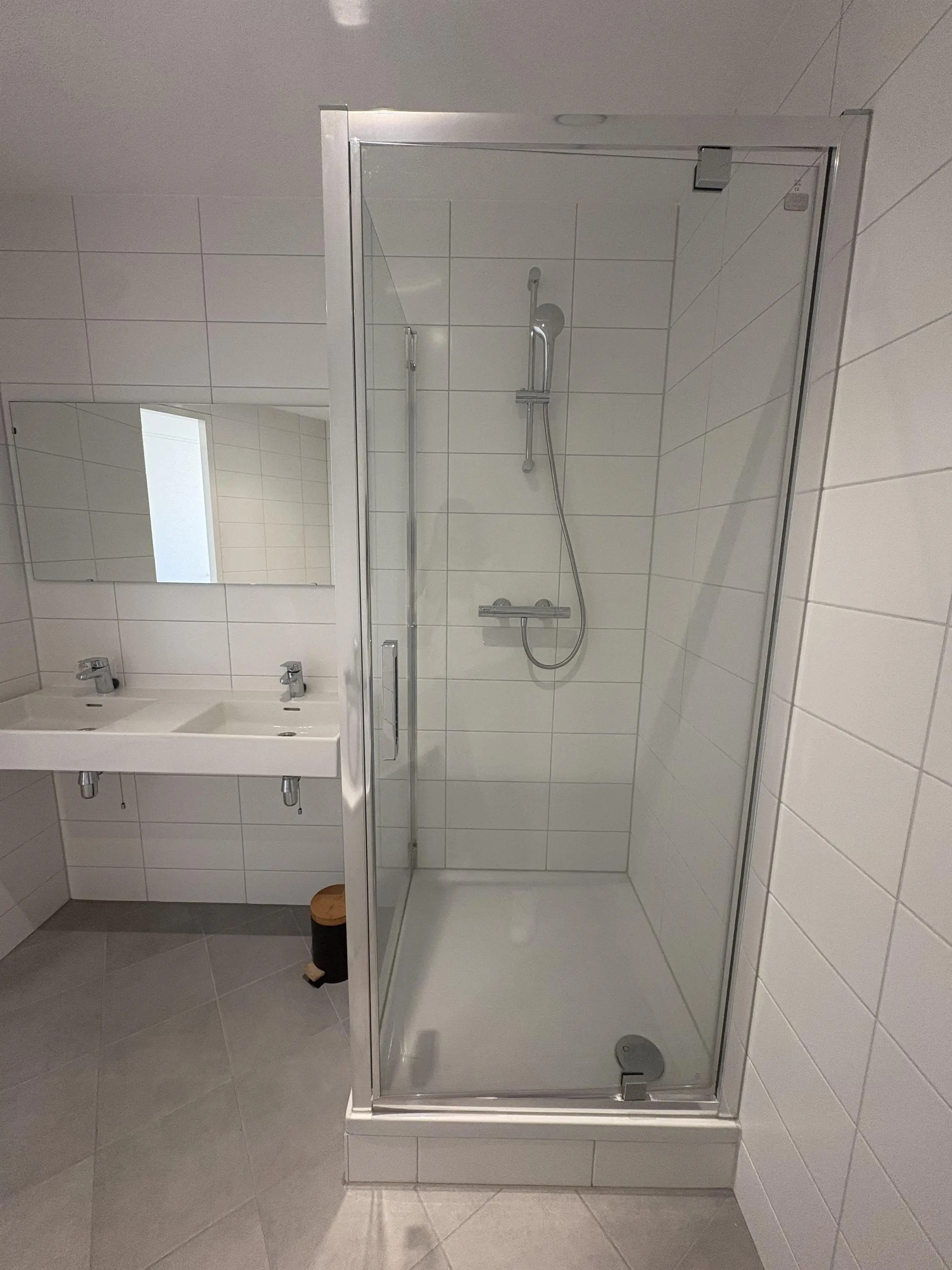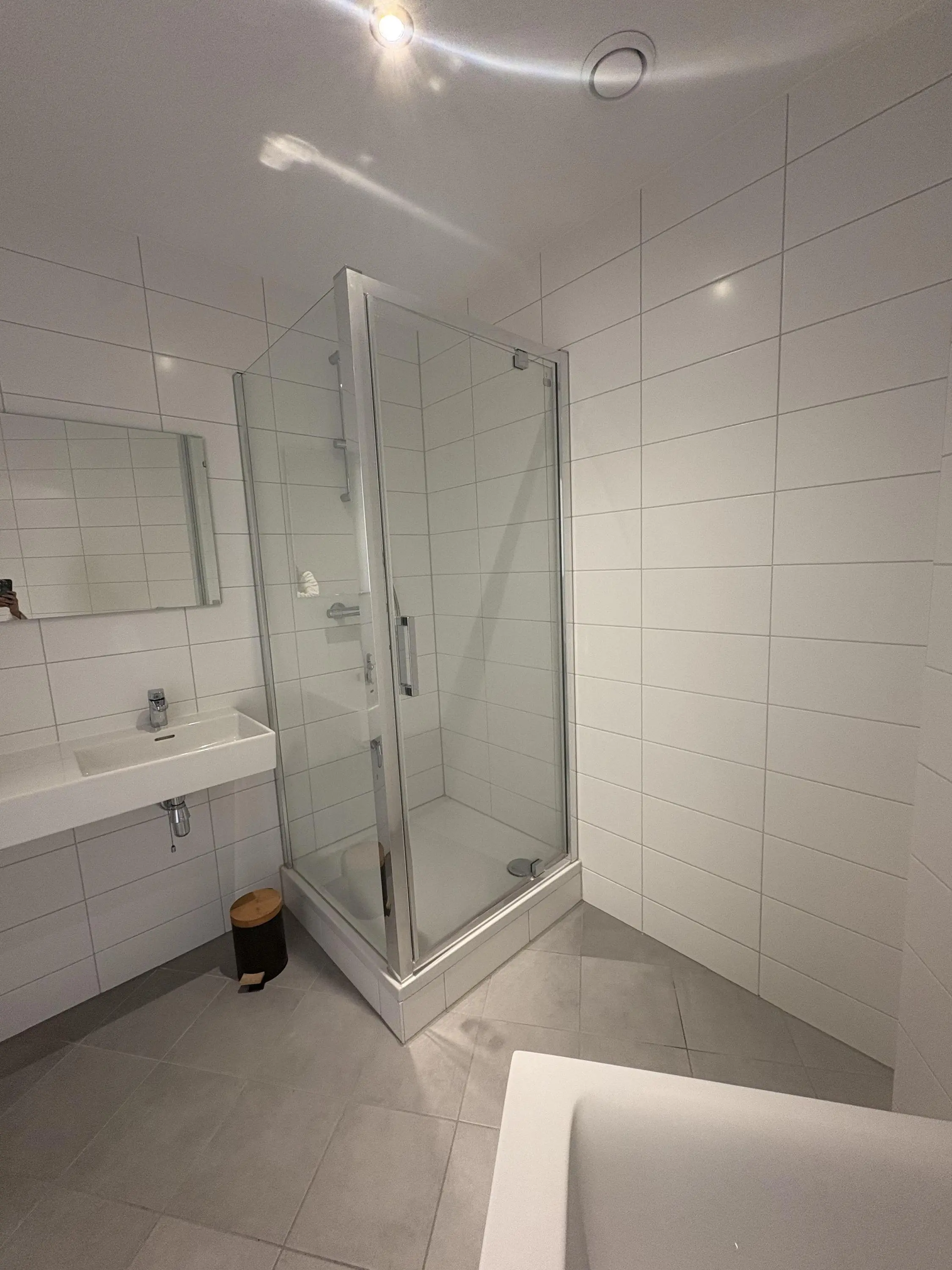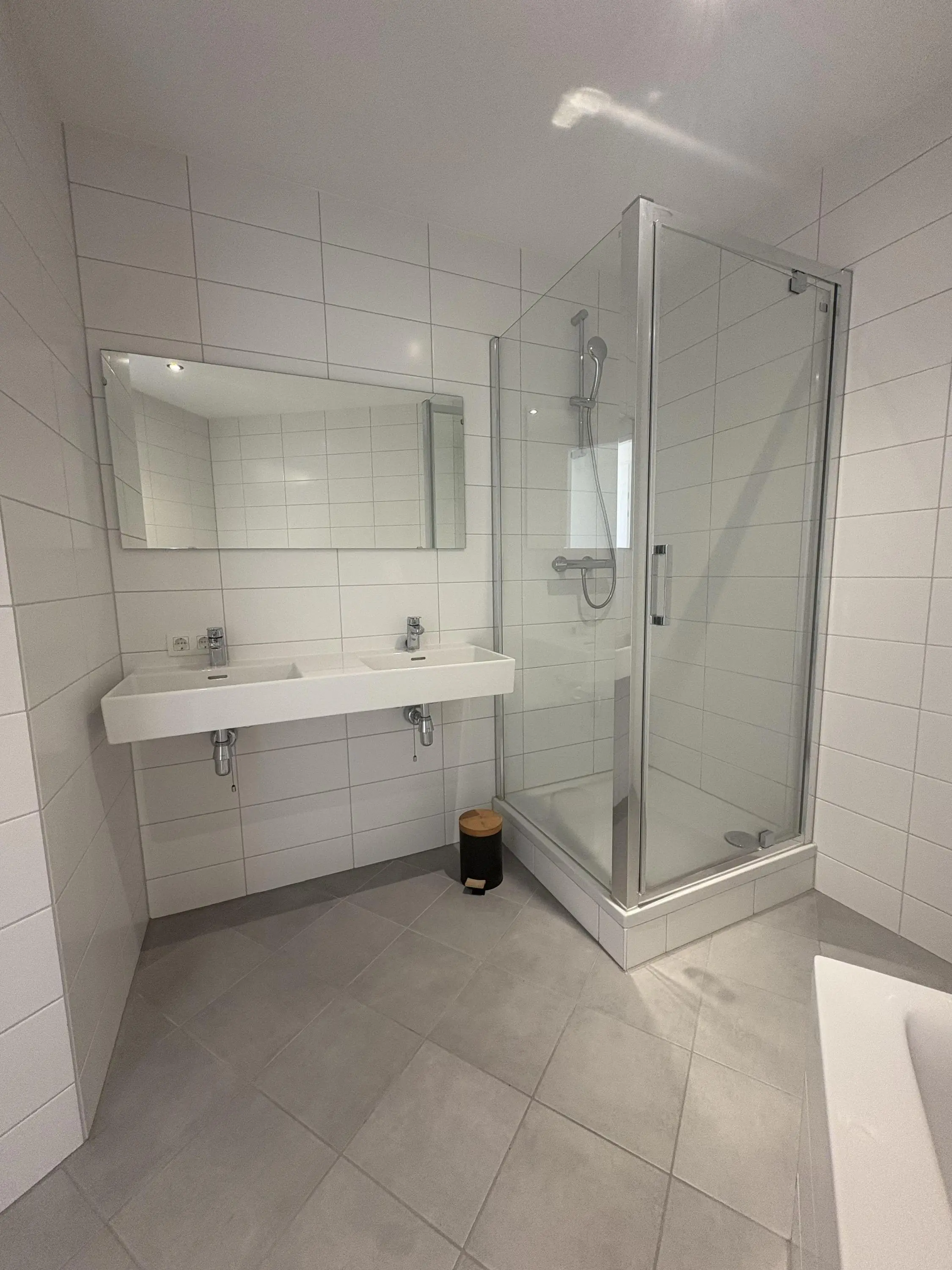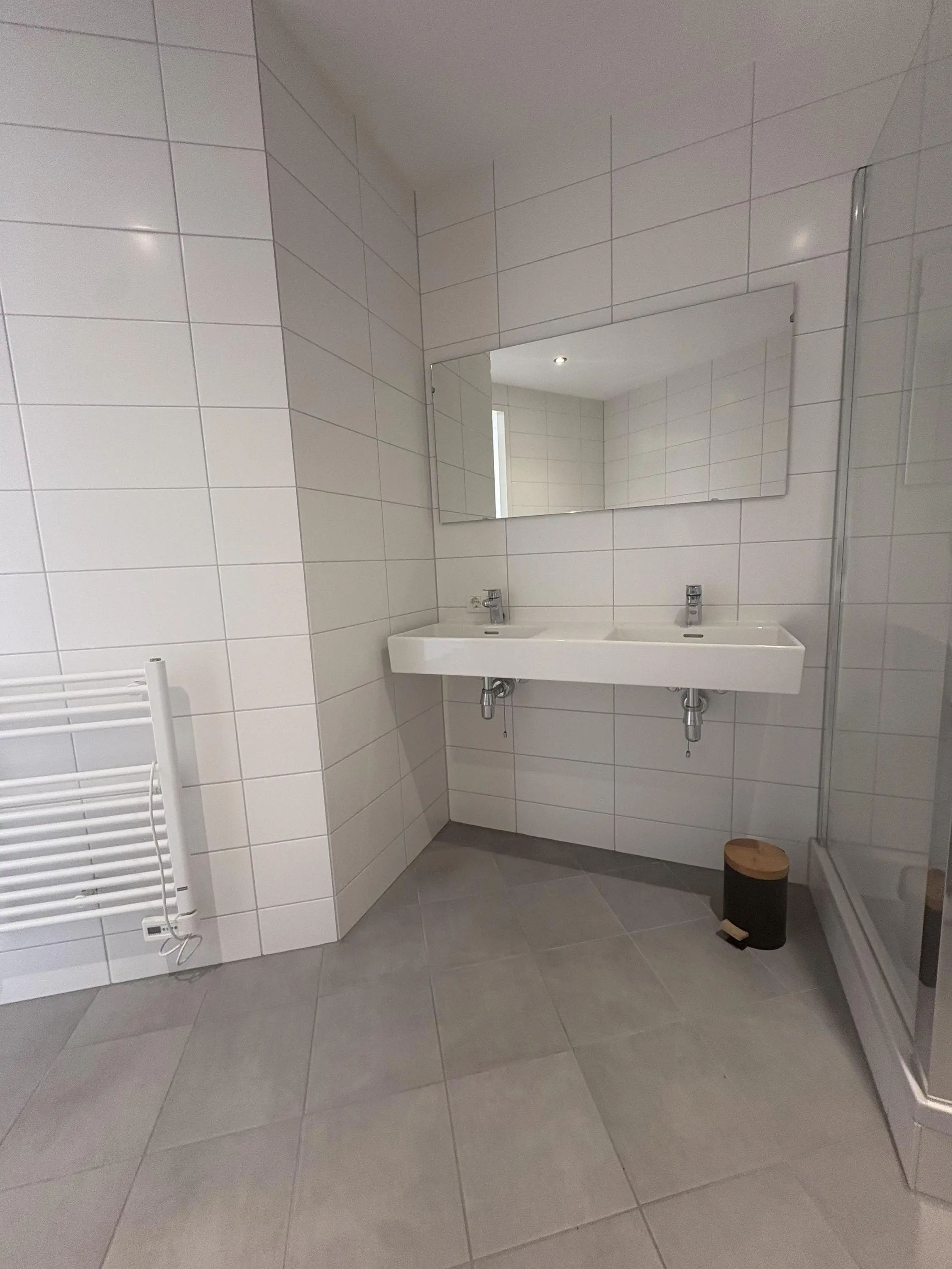 In de badkamer geniet je de luxe van een dubbele wastafel, een ruime douche en een heerlijk ligbad. Het toilet bevindt zich separaat in de woning.