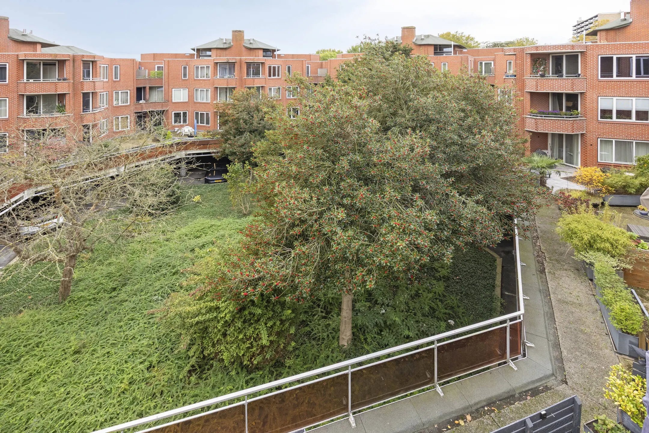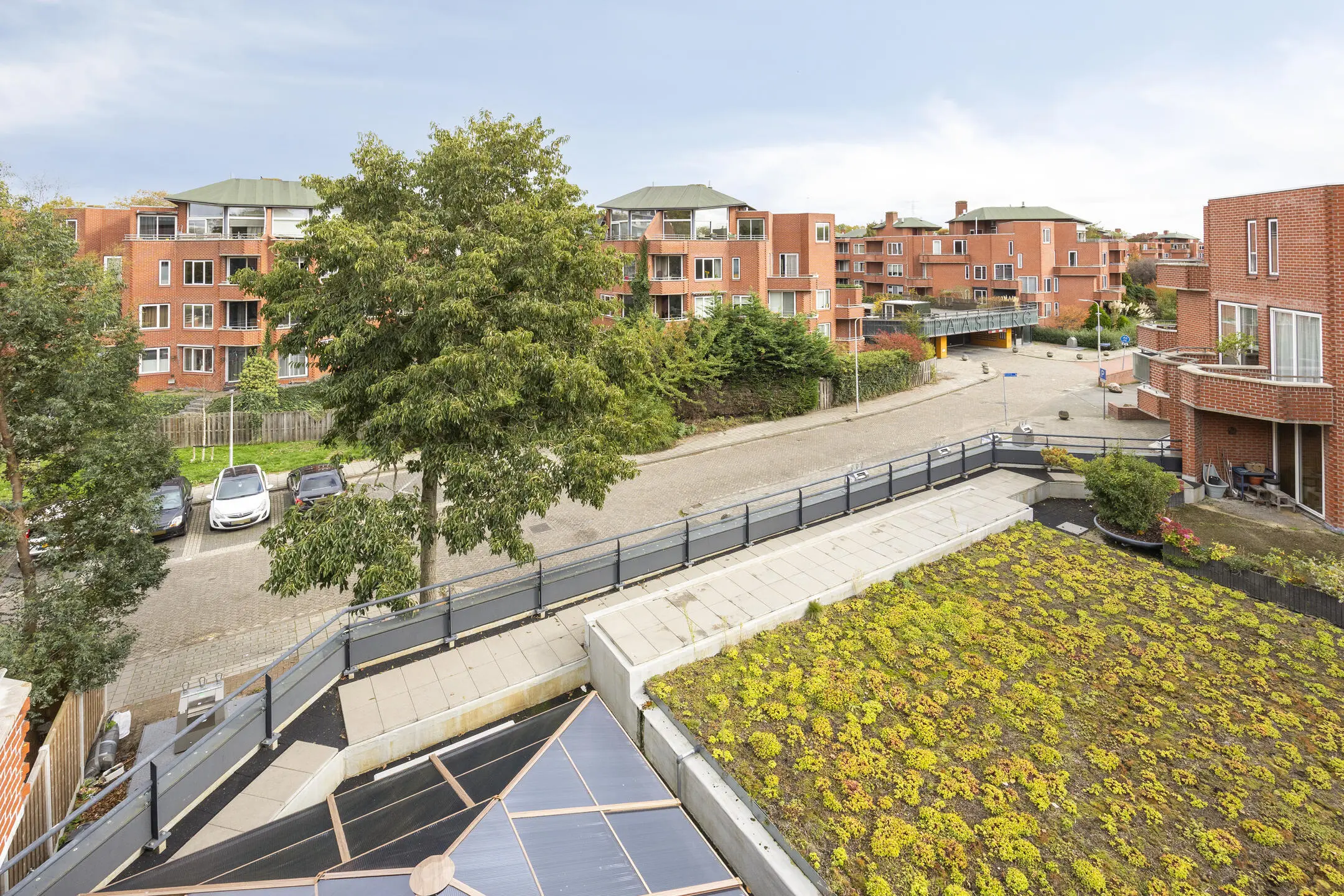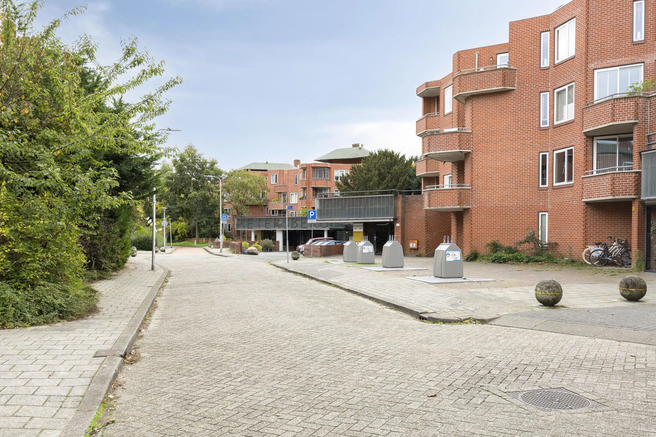 Afgesloten entree met videofoon, brievenbussen en toegang tot de bergingen. Eigen overdekte parkeerplaats