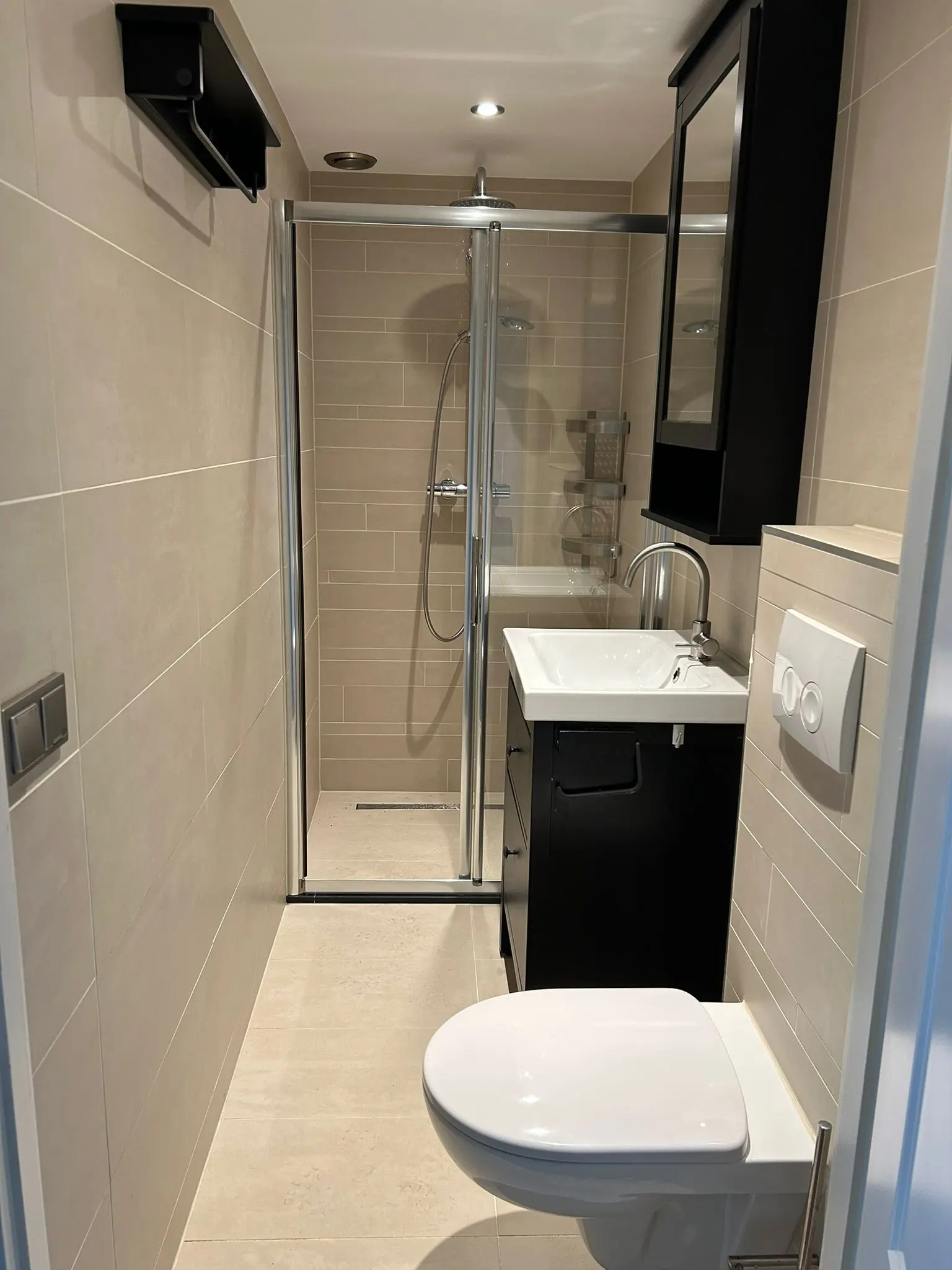 De woonkamer met airco unit is heerlijk licht door de grote raampartij met elektrische screen. Via een deur is er toegang tot het zonnige op het westen gelegen balkon. Door deze gunstige ligging kan je hier genieten van middag- en avondzon. Tevens heb je hier vandaan een fraai uitzicht over de omgeving en de skyline van Rotterdam! De open witte keuken met donker aanrechtblad is geplaatst in rechte opstelling en is gesitueerd in de woonkamer. De keuken is voorzien van een gaskookplaat, afzuigkap, koel-/vriescombinatie en de wasmachine aansluiting. Op de vloer ligt laminaat. De gemoderniseerde badkamer is de eyecatcher van de woning, deze is tot het plafond betegeld in zanddtinten en uitgerust met een wandcloset, wastafelmeubel, spiegelkast en inloopdouche met regen- en handdouche. In het plafond zijn spots geplaatst.