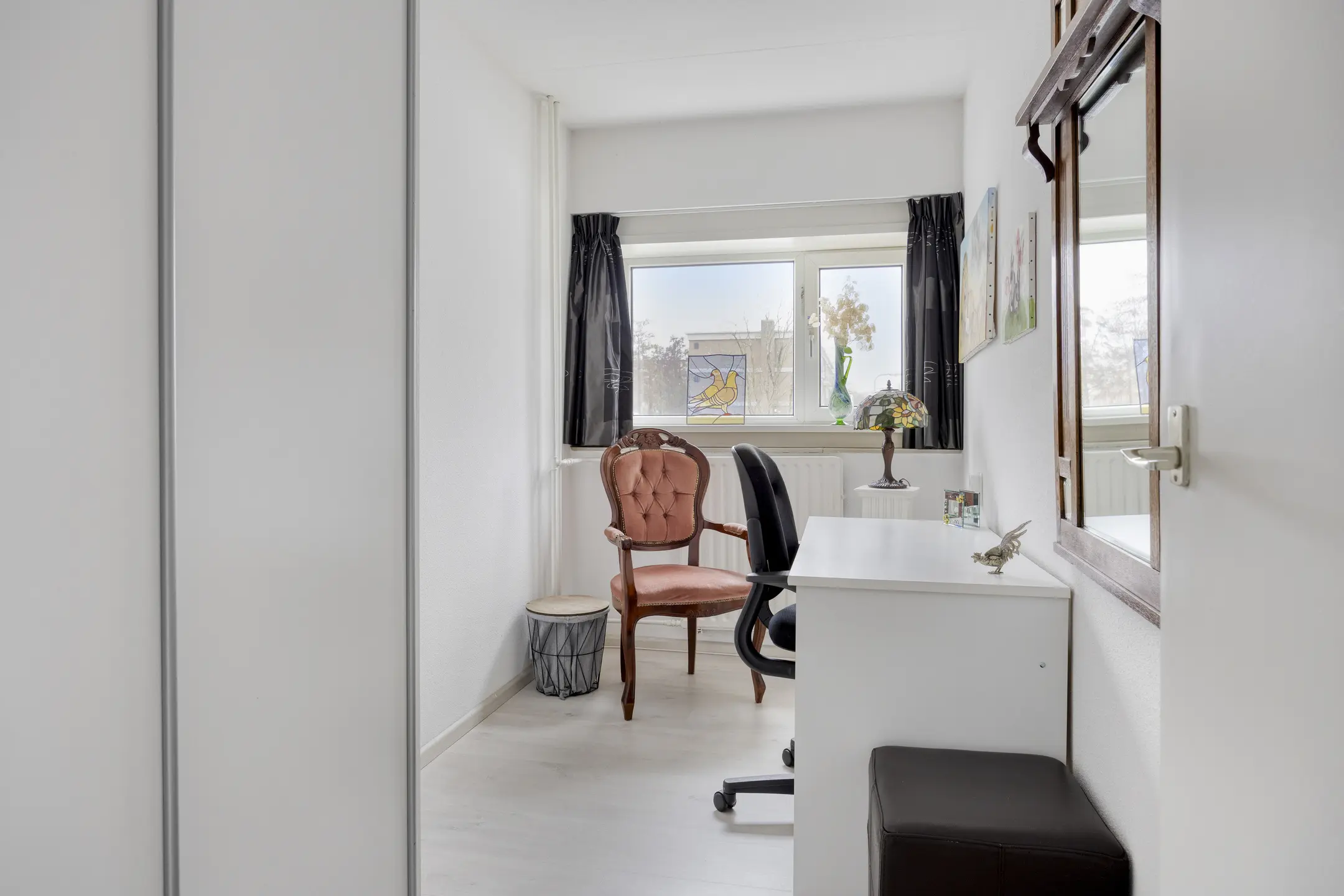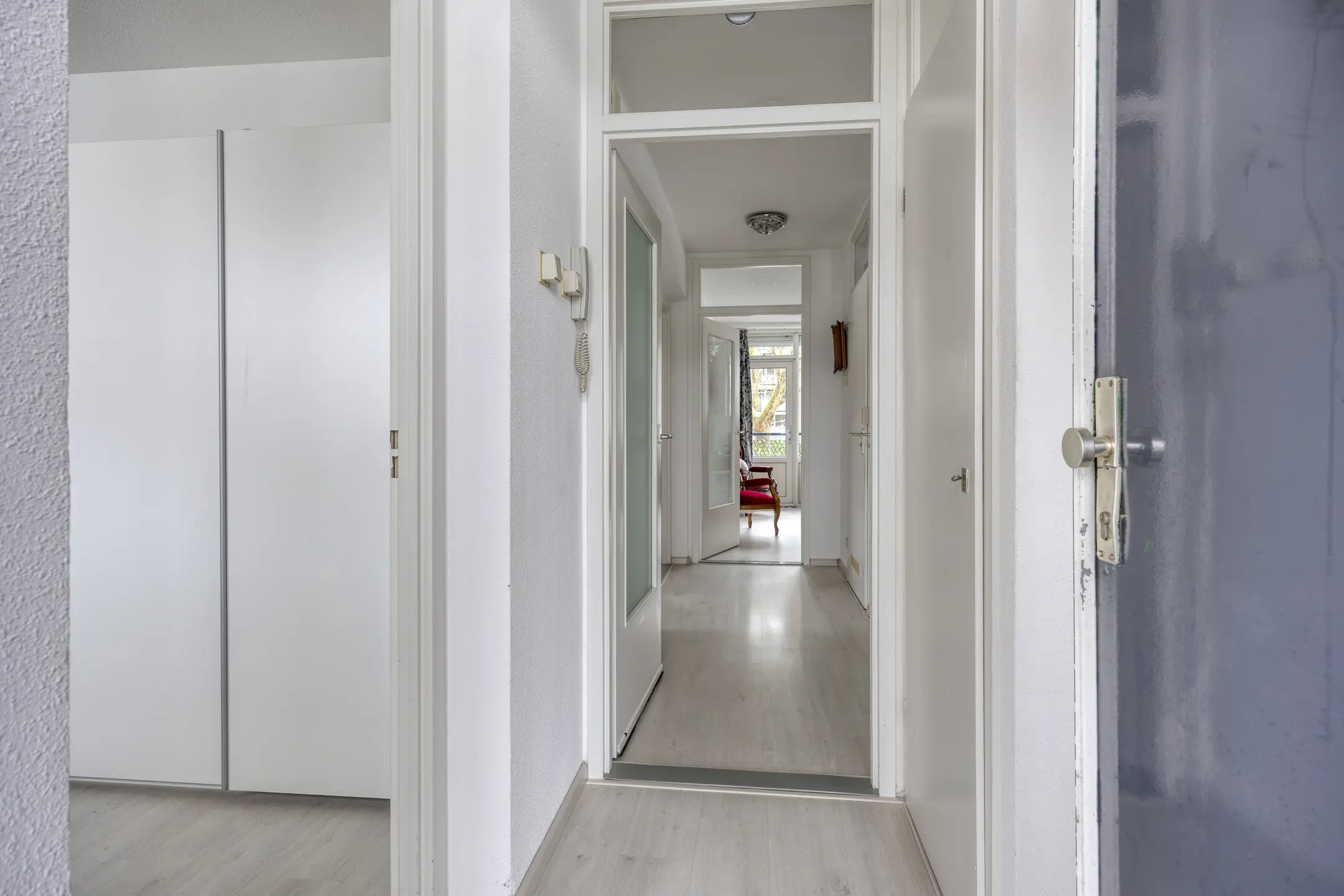 Wanneer je binnenkomt, bevindt zich direct de entree van de woning, waar ook de meterkast is gesitueerd. De eerste slaapkamer is bereikbaar via de entree, ideaal als werkruimte of gastenkamer. Bij verder doorlopen kom je in de gang, die toegang biedt tot de overige vertrekken.